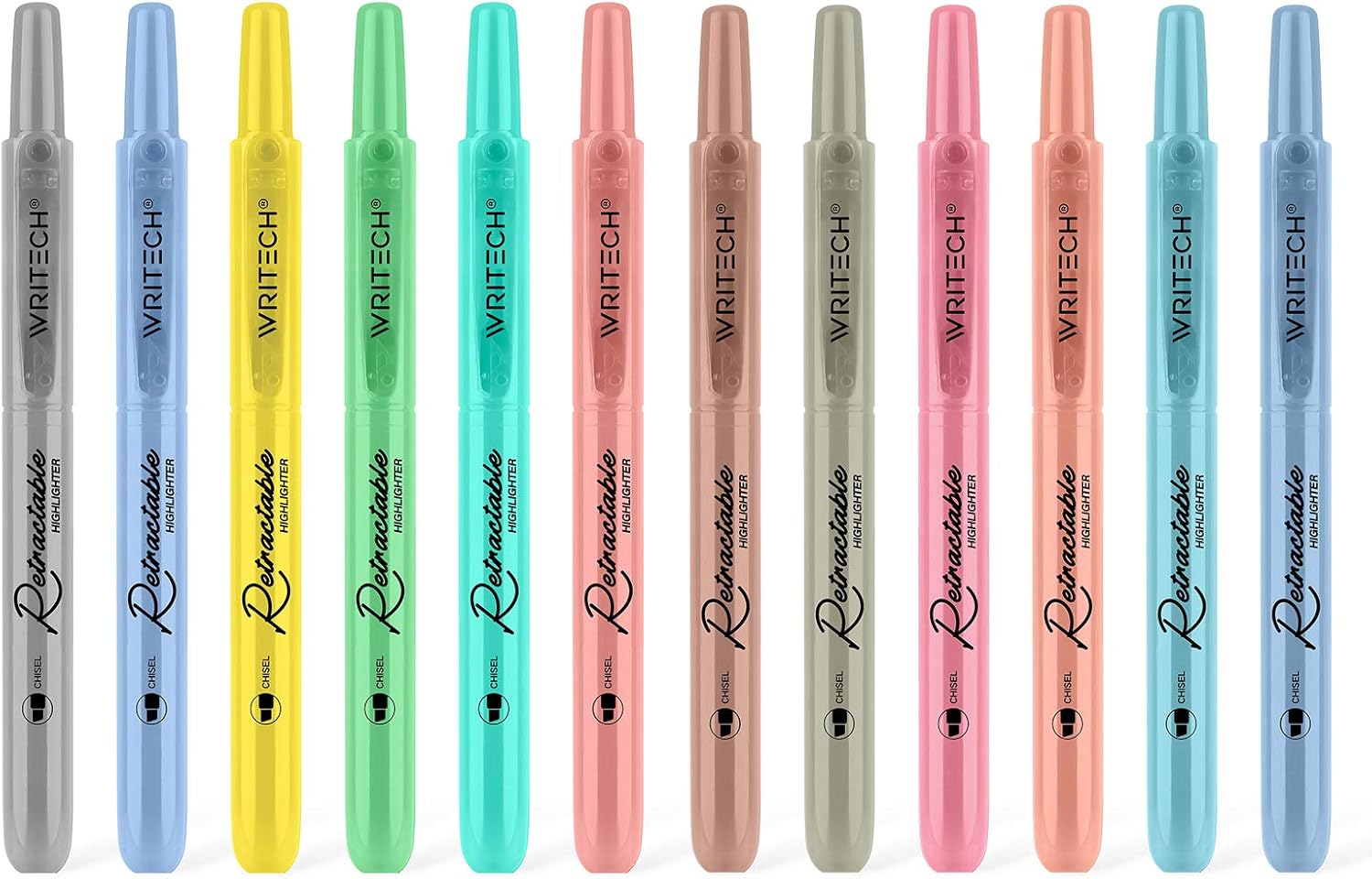 WRITECH Retractable Highlighters Assorted Colors: Chisel Tip Click Aesthetic Highlighter Marker Pens Pack Multi Colored Ink No Bleed Smear for Highlighting Journaling (12ct Mild+Vintage)