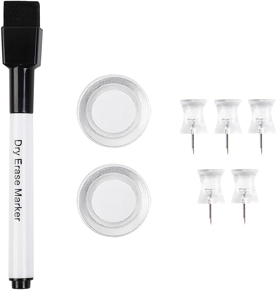 - Complete Accessories: Your dry erase board is equipped with a pen tray containing 1 whiteboard marker, 2 magnets, 5 large pins and 1 pen tray.It's ready to use right out of the box