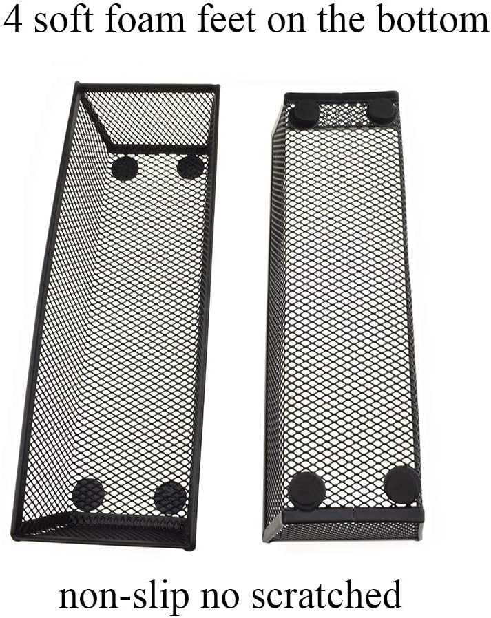 HAHIYO Stackable Mesh Tray Cup 9 x 3 x 2 inches Sturdy Container for Desk Drawer Organizer Collection for Home Office School kitchen Soft Foam Feet No Sharp Edges 2 Pack Black