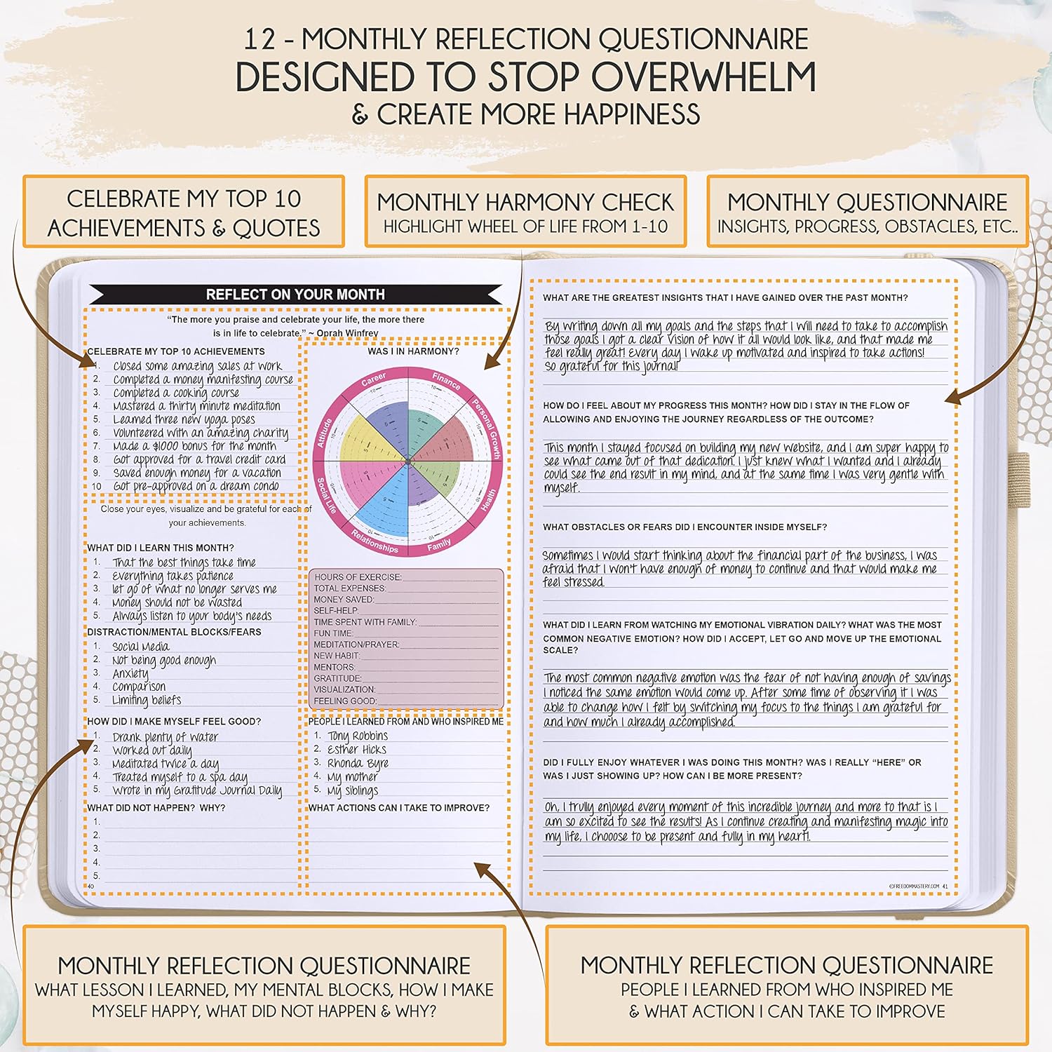 - INCREASE PRODUCTIVITY AND HAPPINESS - This is a deluxe life goal planner showing you how to become the best possible version of yourself on a mental, physical & interpersonal level using the law of attraction vibration guide. This planner is a daily planner, monthly planner, weekly planner, productivity planner, goal planner, business planner, to do list planner, planner notebook & gratitude journal all-in-one.