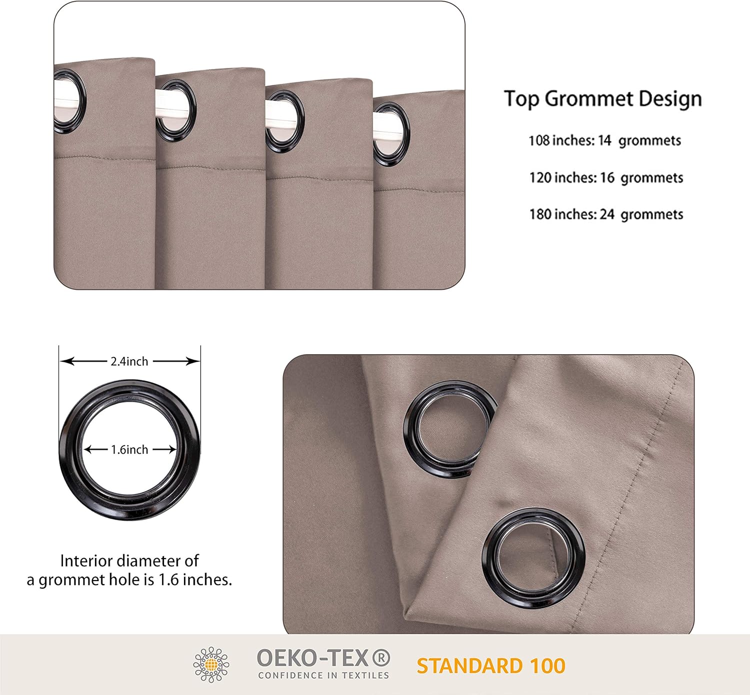 - WHAT'S IN THE PACKAGE? Each set includes 1 curtain panel, and each window drape measures 96-inch (8 ft) length by 120-inch (10 ft) width. 14 elegant metal grommets with 1.6-inch inner diameter, fit well with standard or decorative curtain rods, which makes the curtains easy to install and slide.