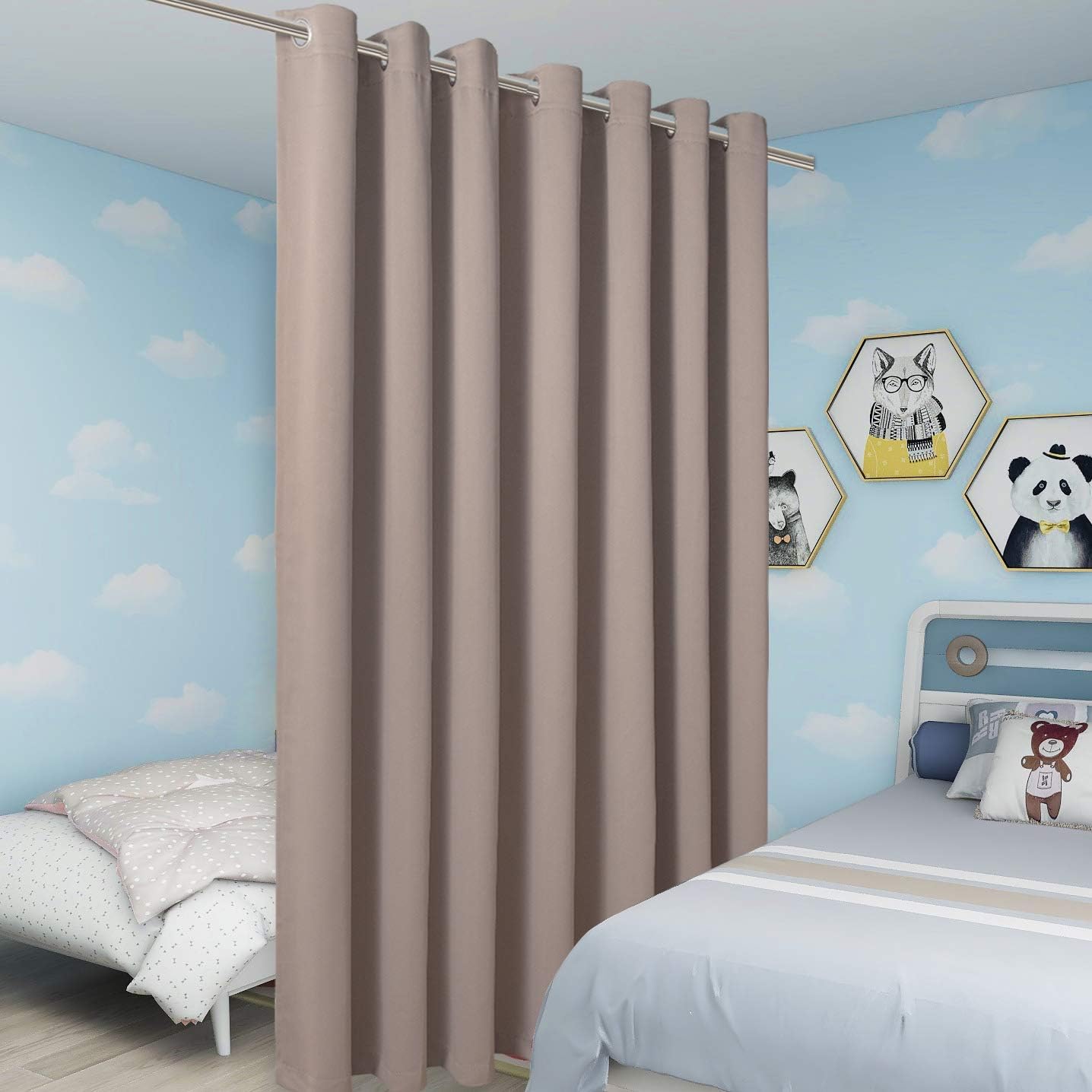 BONZER Room Divider Curtain Total Privacy Wall Noise Reducing Wide Blackout Curtains for Patio Sliding Glass Door, 96L x 108W Inch (8L x 9W ft), 1 Panel, Khaki