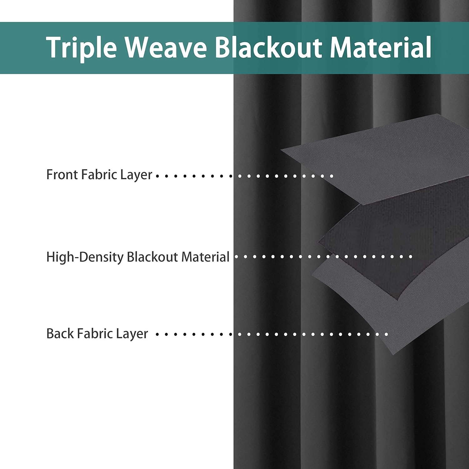 - PREMIUM BLACKOUT MATERIAL: Our room darkening curtain is made of 100% polyester fabric and have the same color with the front and back. Crafted in a certified STANDARD 100 by OEKOβTEX factory from a durable soft and thick triple weave blackout fabric which block out 90% above sunlight and UV rays. Darker colors work better.