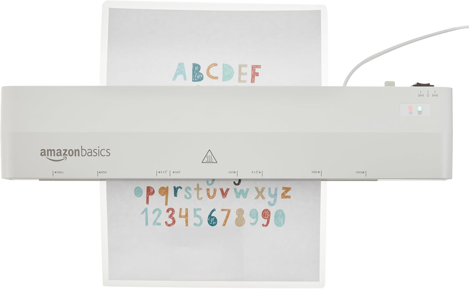 Amazon Basics 12 inch Thermal Laminator Machine, 1 Min Warm-Up, Home/Office/School Use, 20 Pouches Included, White
