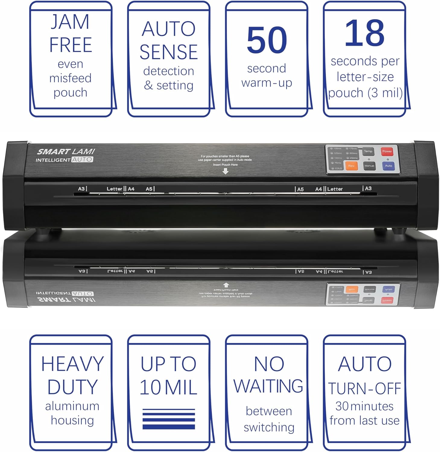 - 【Patented Auto Sense Thickness Detection】Automatically adjusts settings by detecting the total thickness of your pouch and document. No need to worry about pouch thickness or paper type—enjoy hassle-free operation. Perfect for heavy use in offices, schools, and commercial settings.