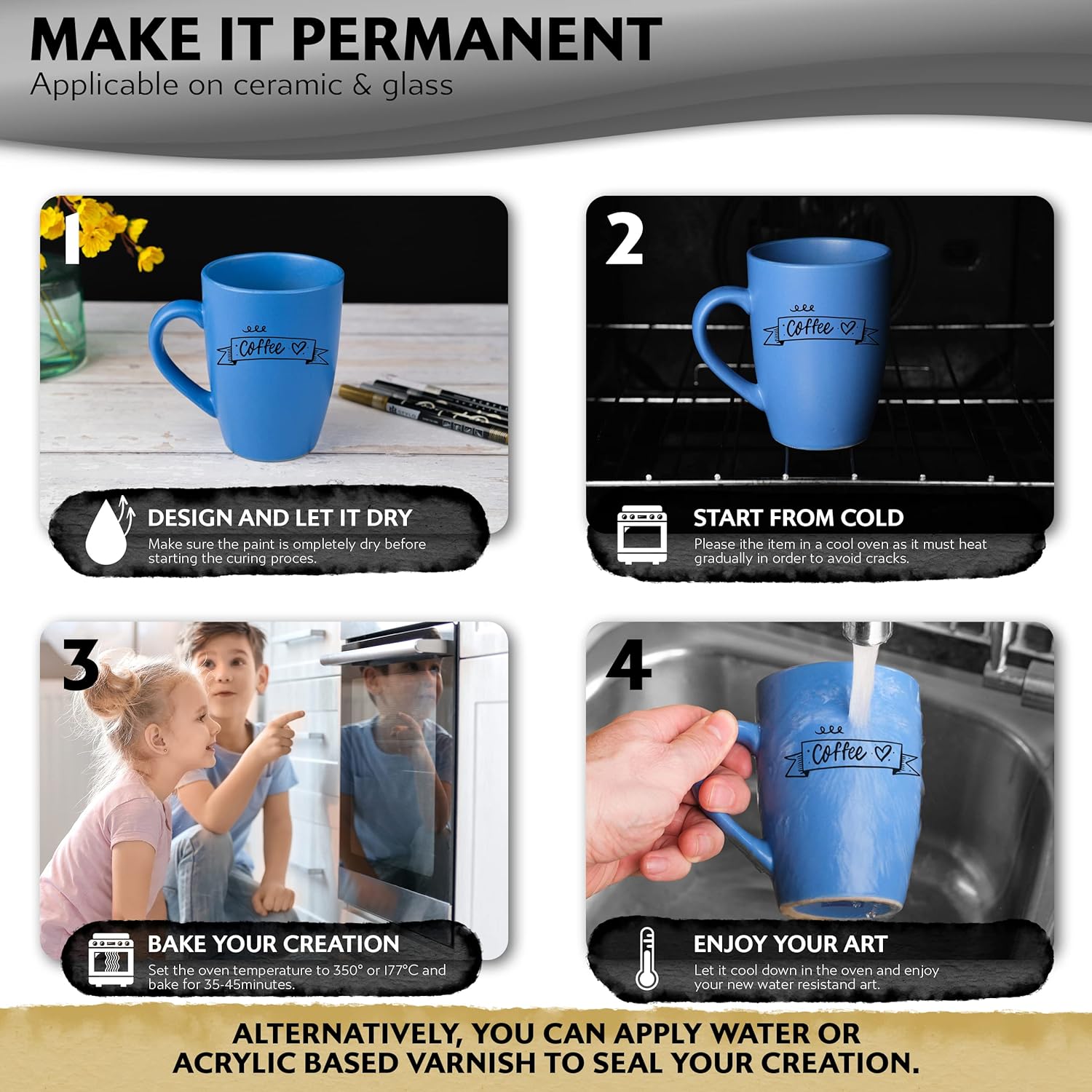 - VERSATILITY – 2 x White, 2 x Black, 2 x Gold and 2 x Silver marker mettalic pen suitable to work on wood, fabric, glass, ceramic, stones and other surfaces