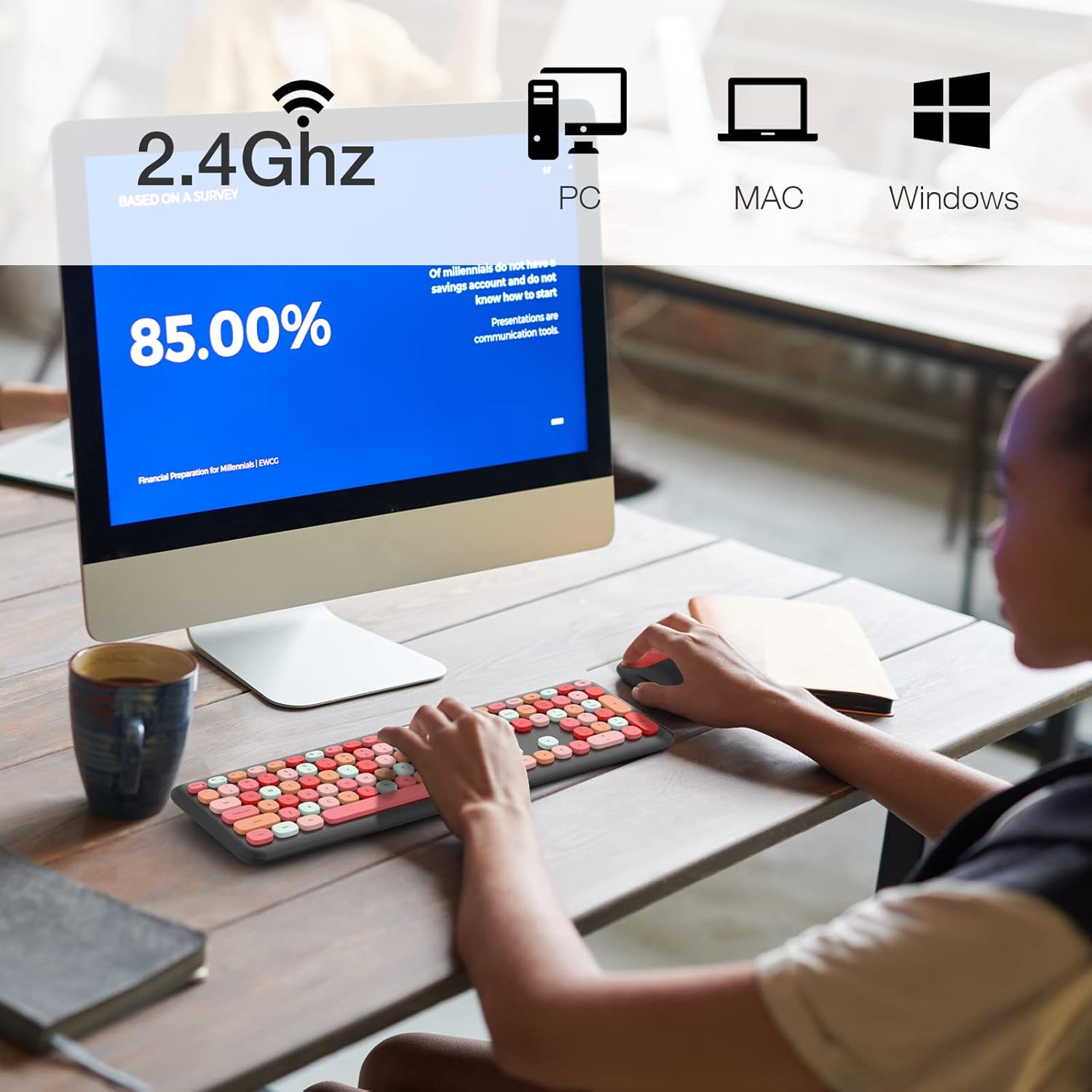 MOFII Wireless Keyboard and Mouse Combo Silent, Slim Compact 2.4G USB Full Size, Cute Keyboard 110 Keys for PC, Notebook, MacBook, Tablet, Laptop, Windows System