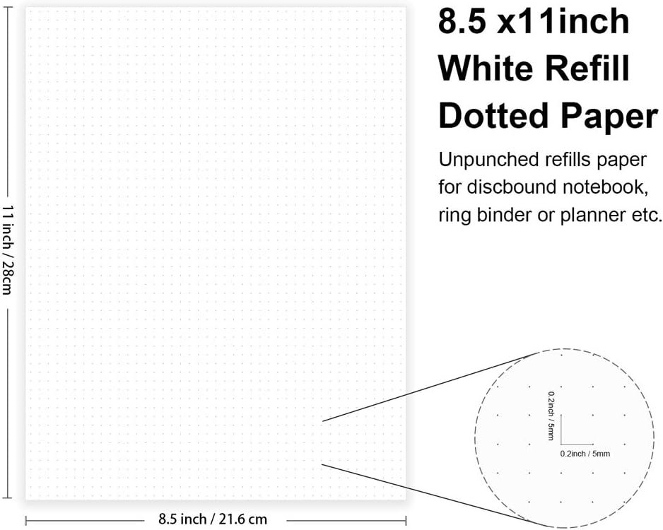 - 8.5 X 11 INCH - Loose leaf paper, 100 sheets/200 pages. 5mm apart dot grid, printed on both sides