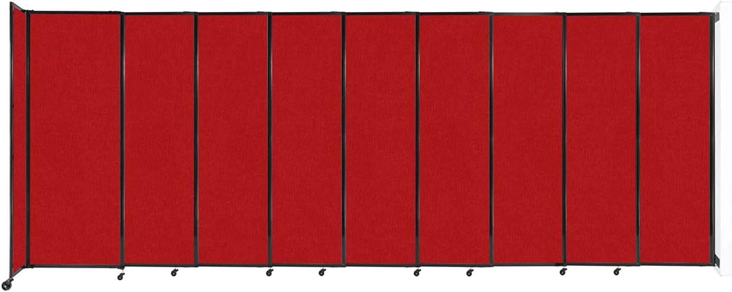 Wall-Mounted Sliding StraightWall Room Divider | Adjustable Widths | Locking Wheels | Room Separator | Up to 19'9" Wide x 7'6" Tall Red Fabric Panels