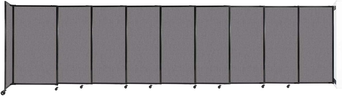 Wall-Mounted Sliding StraightWall Room Divider | Adjustable Widths | Locking Wheels | Room Separator | Up to 19'9" Wide x 5' Tall Slate Fabric Panels