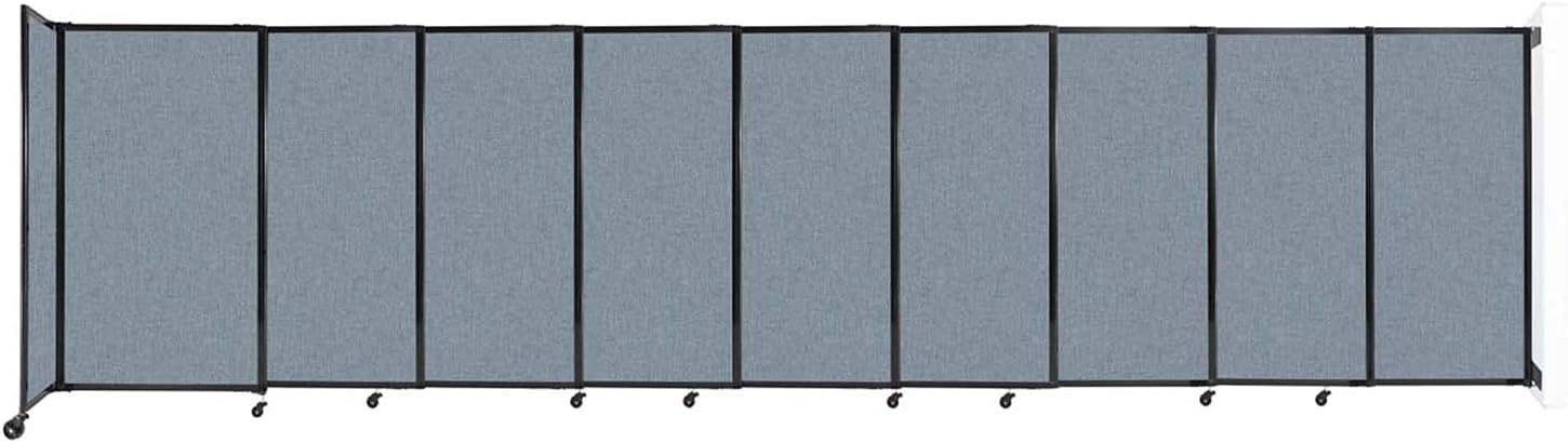 Wall-Mounted Sliding StraightWall Room Divider | Adjustable Widths | Locking Wheels | Room Separator | Up to 19'9" Wide x 5' Tall Powder Blue Fabric Panels
