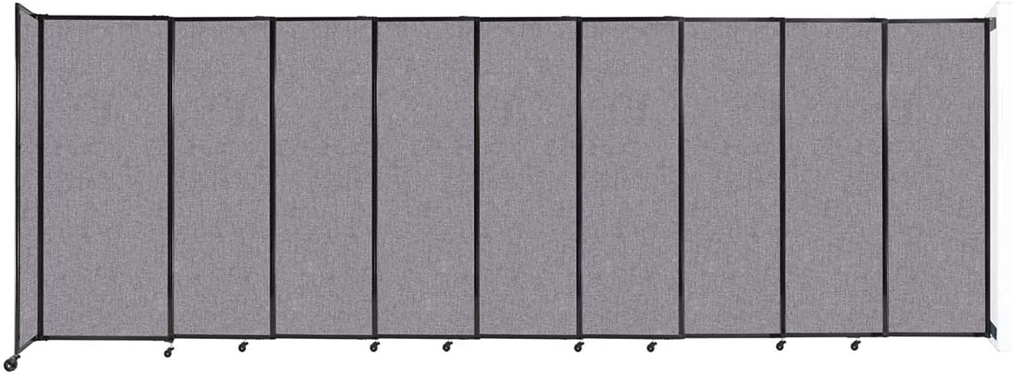 Wall-Mounted Sliding StraightWall Room Divider | Adjustable Widths | Locking Wheels | Room Separator | Up to 19'9" Wide x 6'10" Tall Cloud Gray Fabric Panels