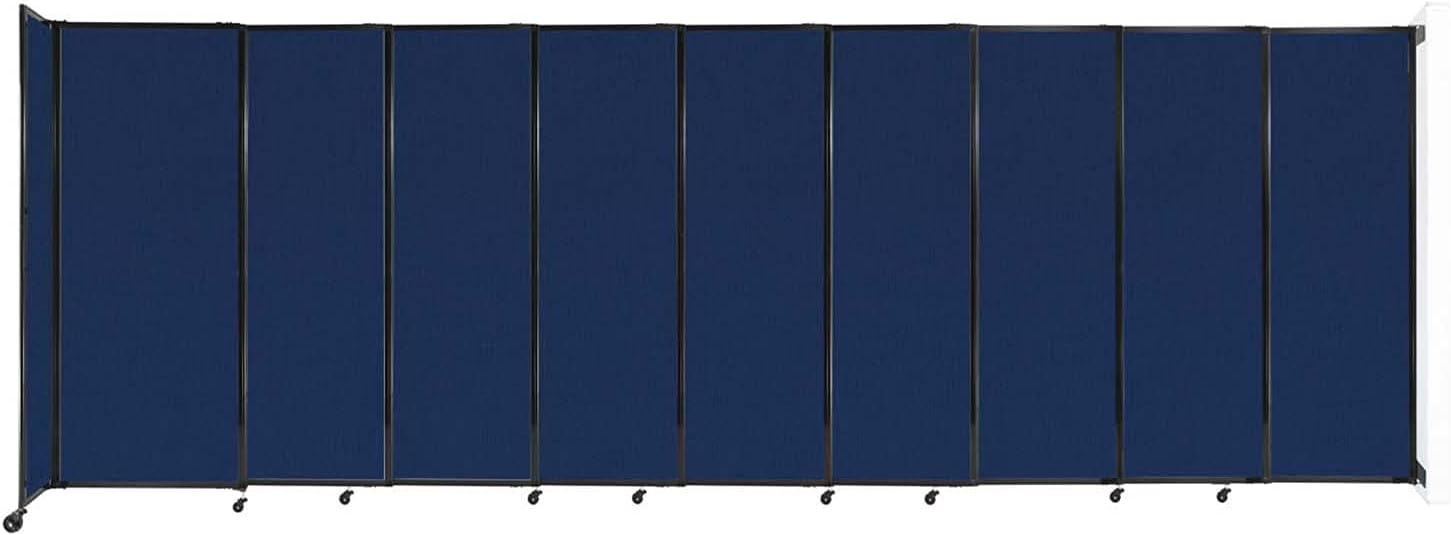 Wall-Mounted Sliding StraightWall Room Divider | Adjustable Widths | Locking Wheels | Room Separator | Up to 19'9" Wide x 6'10" Tall Navy Blue Fabric Panels