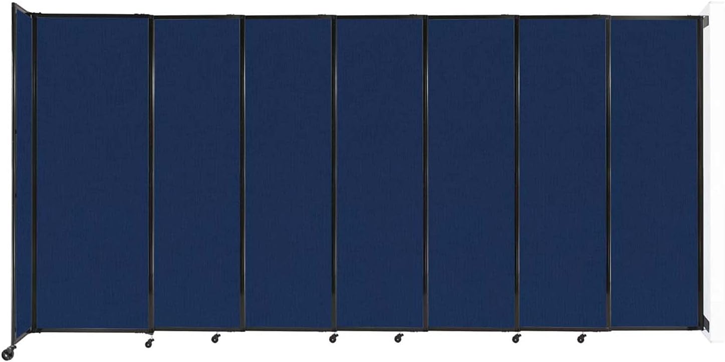 Wall-Mounted Sliding StraightWall Room Divider | Adjustable Widths | Locking Wheels | Room Separator | Up to 15'6" Wide x 7'6" Tall Navy Blue Fabric Panels