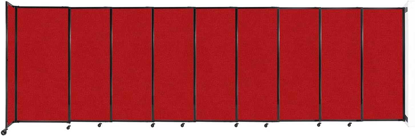 Wall-Mounted Sliding StraightWall Room Divider | Adjustable Widths | Locking Wheels | Room Separator | Up to 19'9" Wide x 6' Tall Red Fabric Panels
