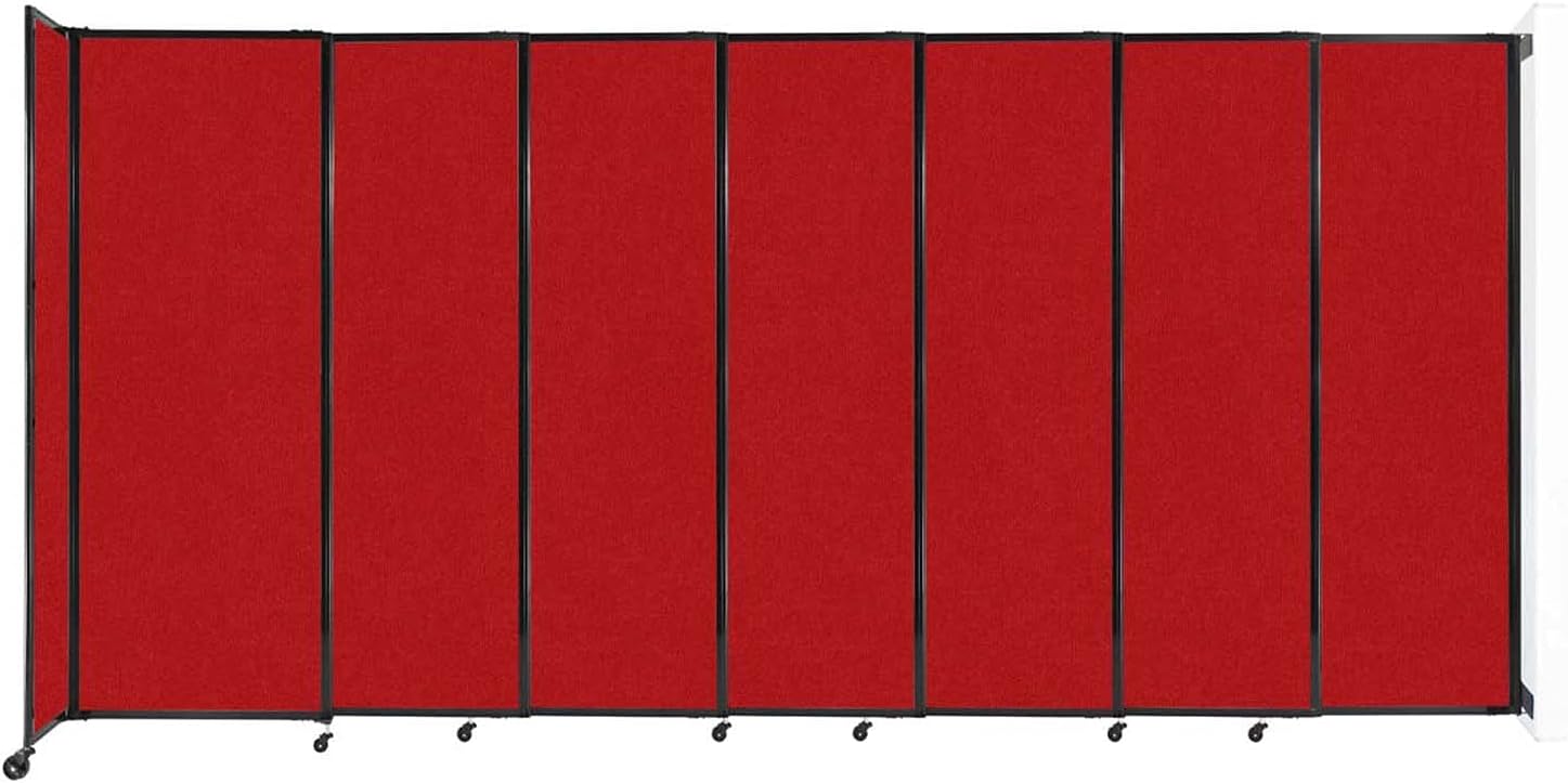Wall-Mounted Sliding StraightWall Room Divider | Adjustable Widths | Locking Wheels | Room Separator | Up to 15'6" Wide x 7'6" Tall Red Fabric Panels