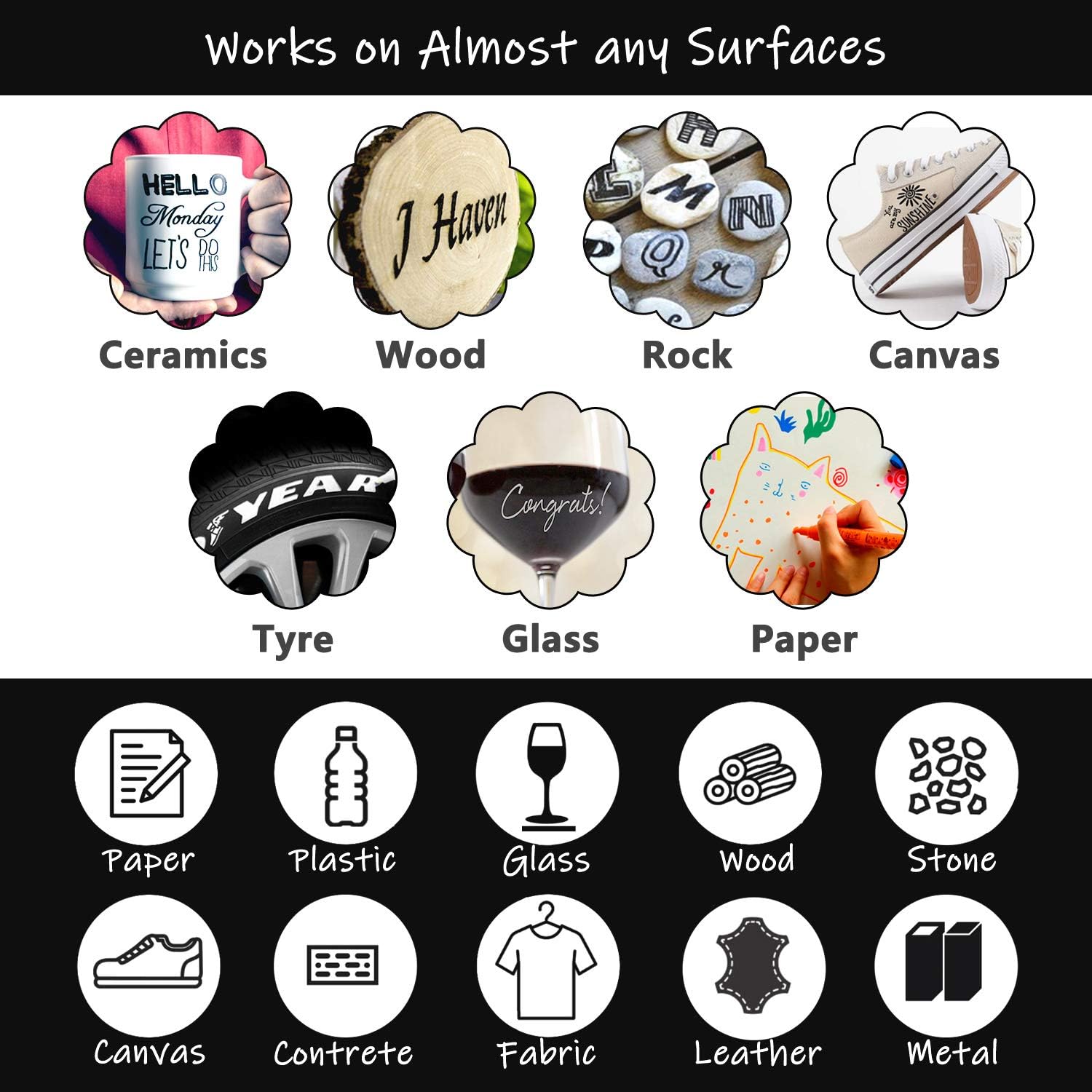 - WORKS ON ALMOST ANY SURFACES: The blue paint pens works on almost any surfaces such as rock, canvas, wood, metal, glass, ceramic, plastic, tire, etc. They are the best tool for creativities
