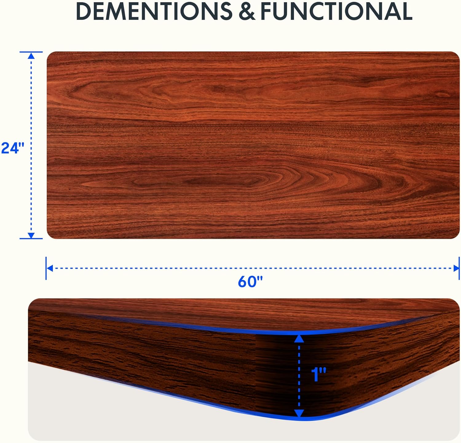 FLEXISPOT EN2 Whole-Piece Standing Desk with Clamp Power Strip, 60 x 24 Electric Stand Up Height Adjustable Desk with Cable Management (White Frame + 60" Mahogany Desktop, 2 Packages)
