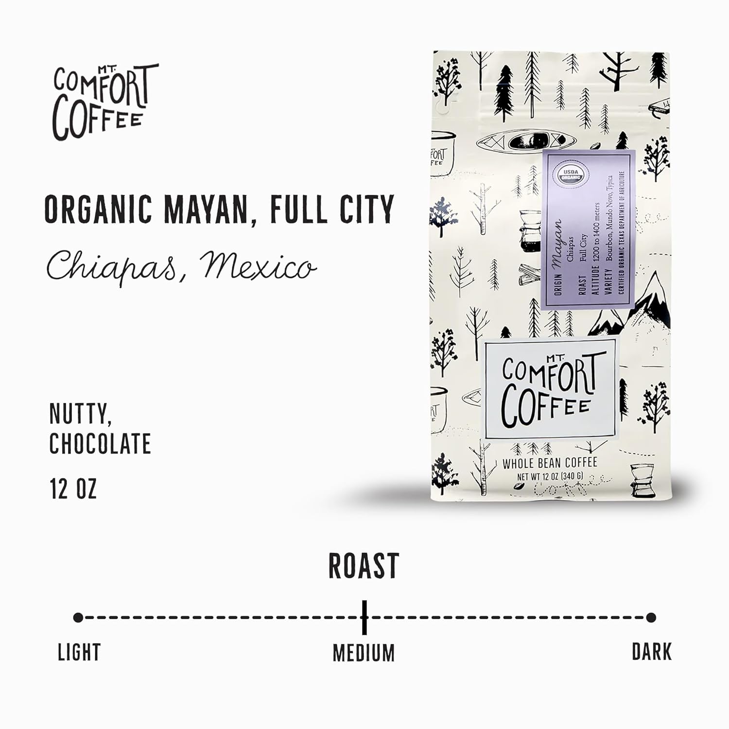 Mt. Comfort Coffee Organic Mayan Whole Bean Coffee, 12oz – Full City Roast with Nutty & Chocolate Notes – Sustainably Sourced from Small Mexican Farms