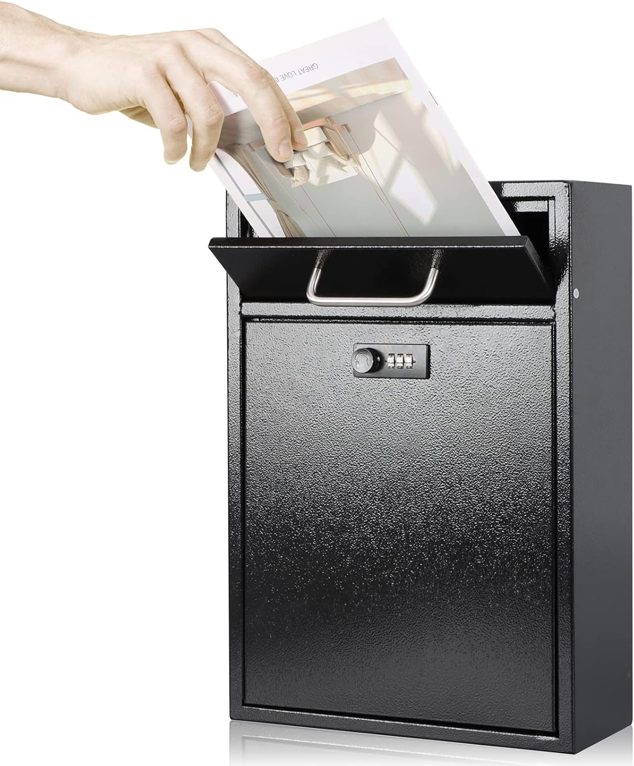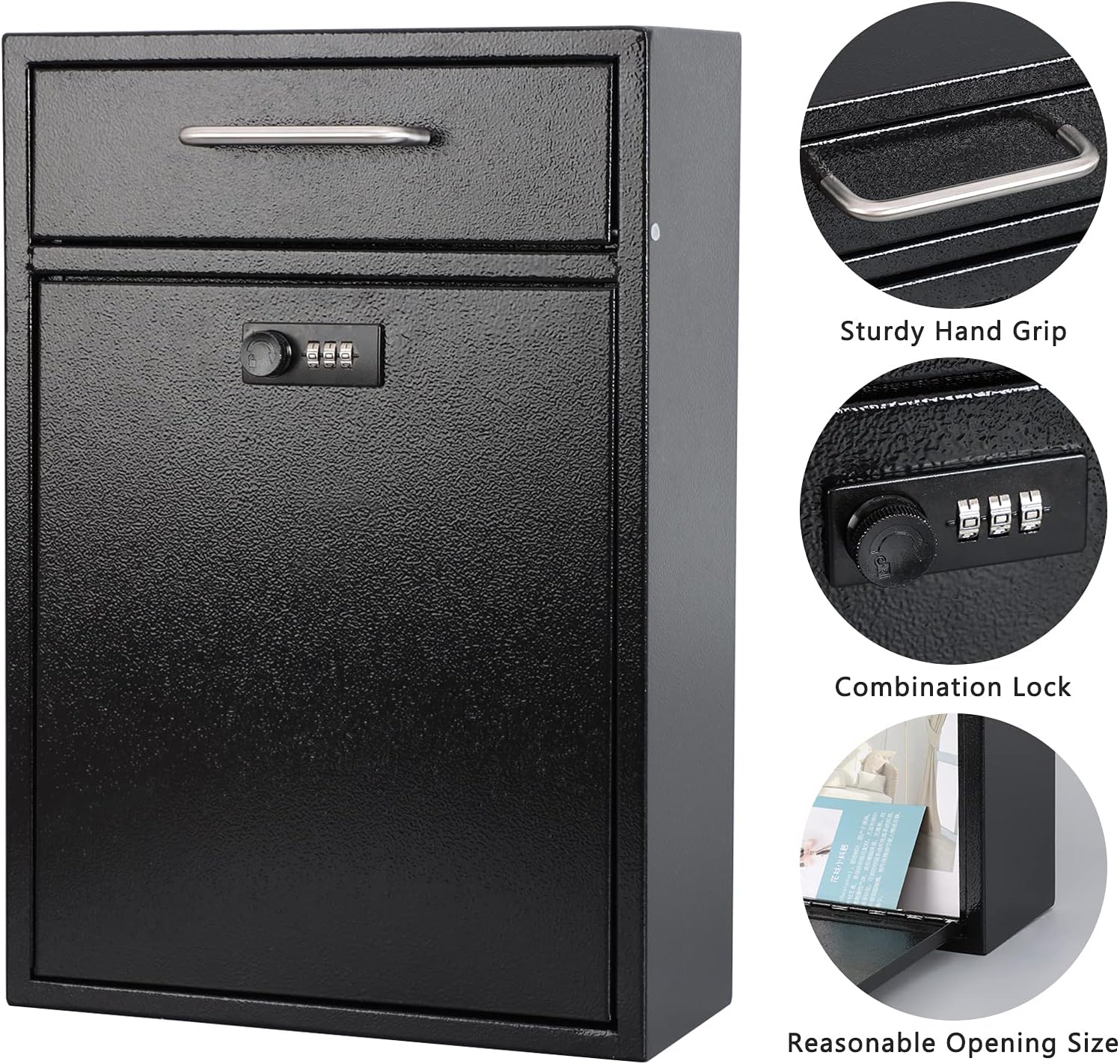 KYODOLED Steel Combination Lock Mail Boxes Outdoor,Locking Wall Mount Mailbox,Security Lock Drop Box,Collection Boxes,16.2H x 11.22L x 4.72W Inches,Black X Large