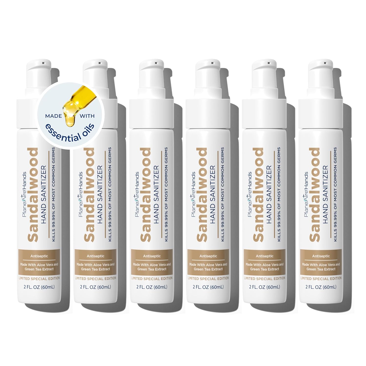 Sandalwood Lotion Hand Sanitizer | Travel Essential | TSA-Approved | Moisturizing Hand Lotion | Plant-Based and Vegan | Made with Essential Oils | Travel Size | 6-Pack