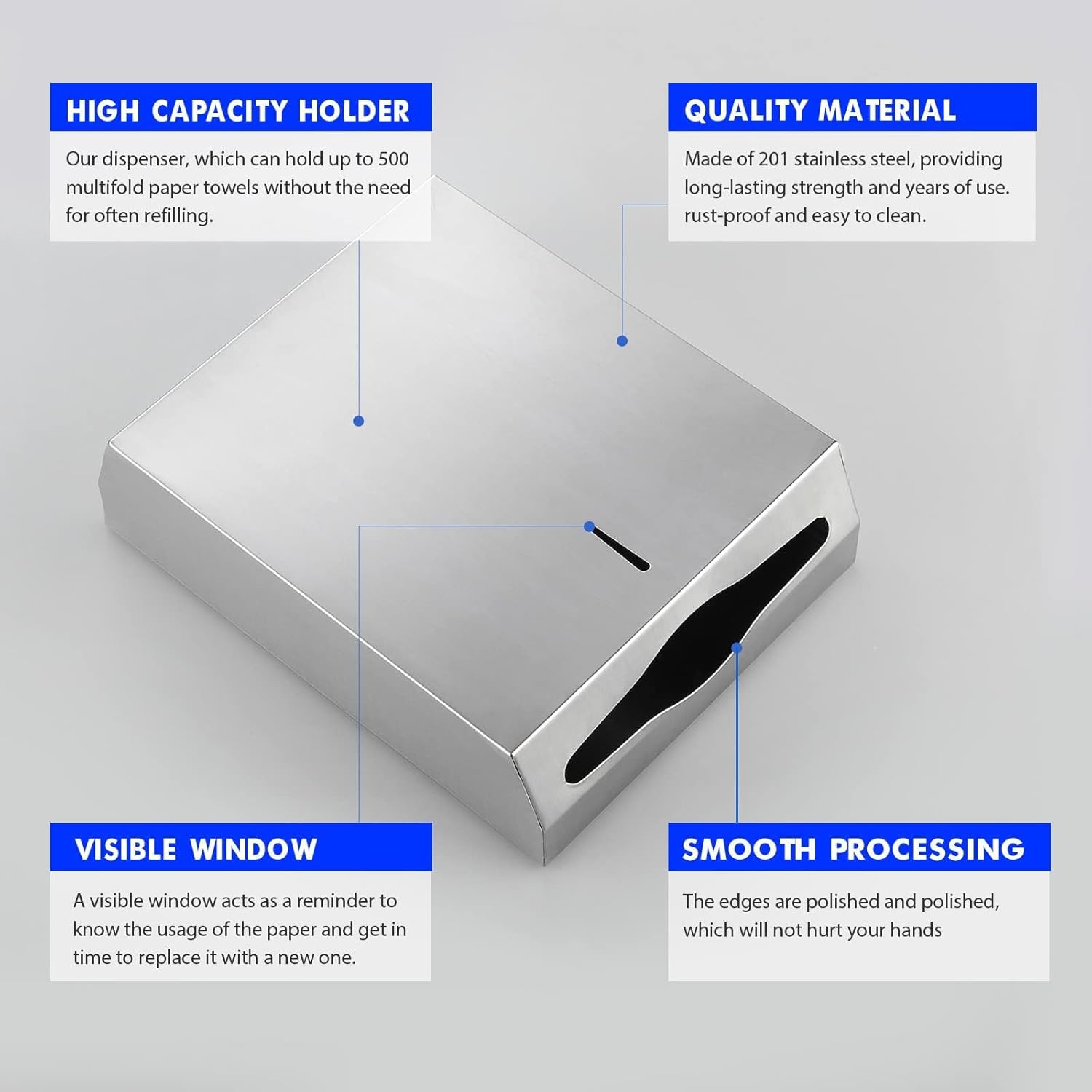 - LARGE CAPACITY - Dispenses 400 c-fold, tri-fold, z-fold, multi-fold, and m-fold paper towels. Measures 11.2" width by 14.6" height by 4" depth