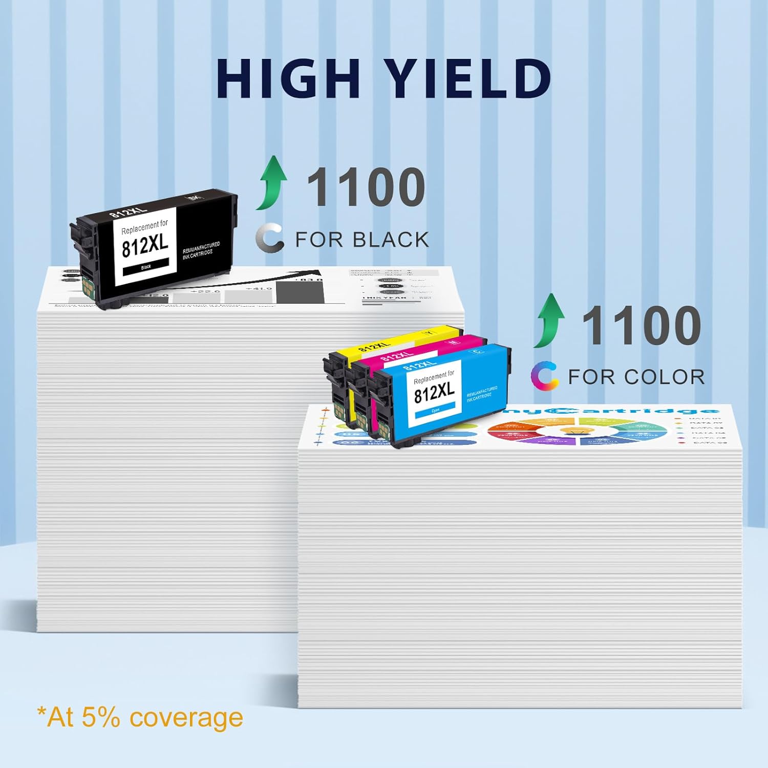 - Higher Page Yield:1,100 pages per 812xl black ink cartridges; 1,100 pages per 812xl color ink cartridges, at 5% coverage on A4/letter paper.4 pack 812xl ink cartridges for epson printer remanufactured for epson wf-7840 ink cartridges can save you 30% to 50% of the printing cost