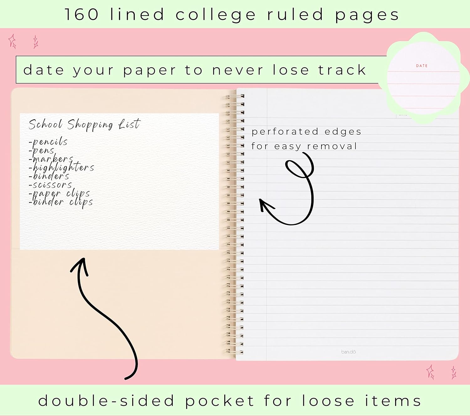- LAYOUT: College ruled notebook has metal spirals, a pocket page, and an adorable centerfold that doubles as wall art. You'll never want to be without one of these spiral notebooks again!