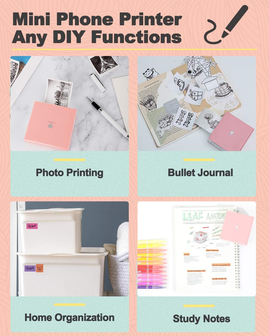 - Multi-Purpose Mini Printer- Phomemo M02 mini sticker printer is suitable for company business, work planner, office assistant, memo, study notes, shopping list, receipts, bookmarks, greeting cards, alphabet learning, coloring and so on. You can use it for DIY, study, fun, labels and create more