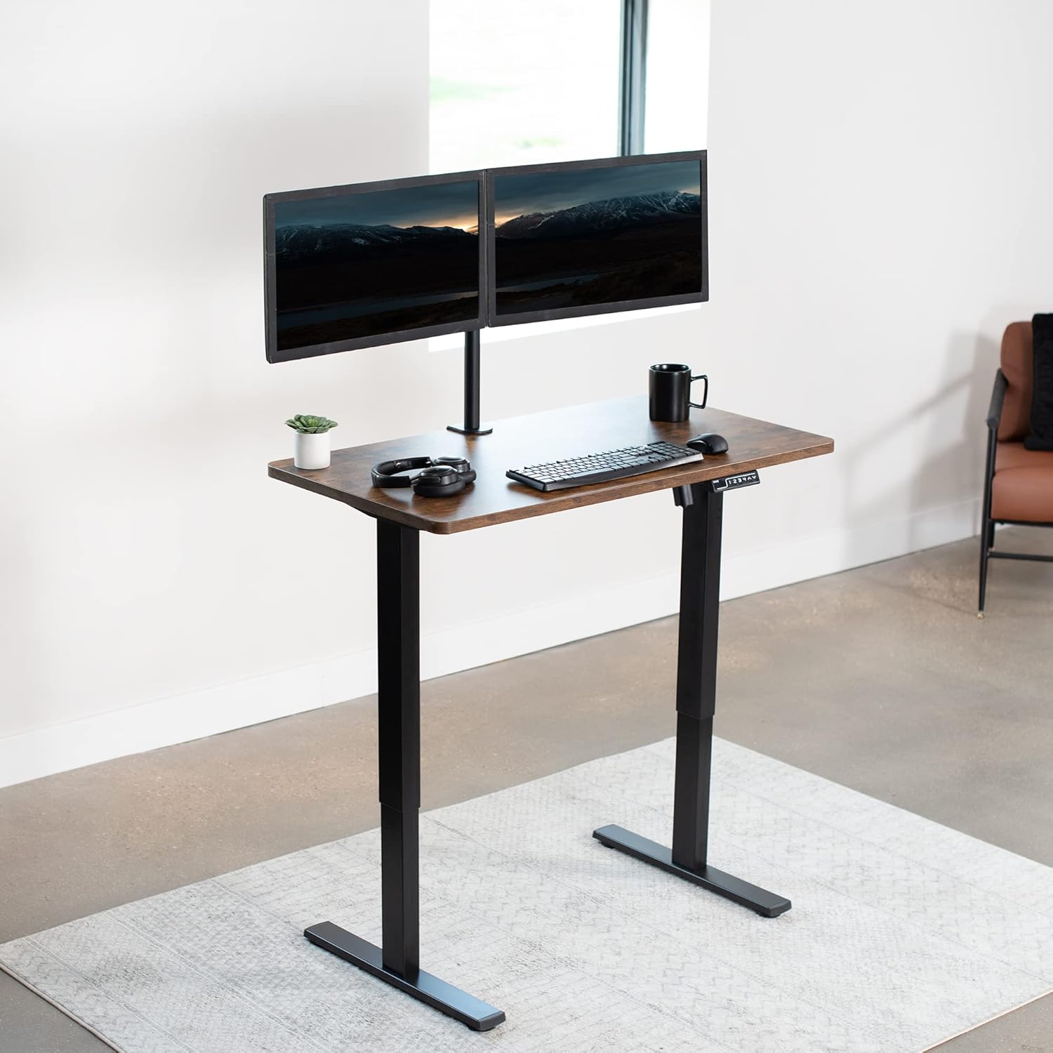 VIVO Electric 43 x 24 in Rustic Standing Desk, Memory Height Adjustment, 1B Series, One-Piece Vintage Brown Top, Black Frame, DESK-KIT-1B4N