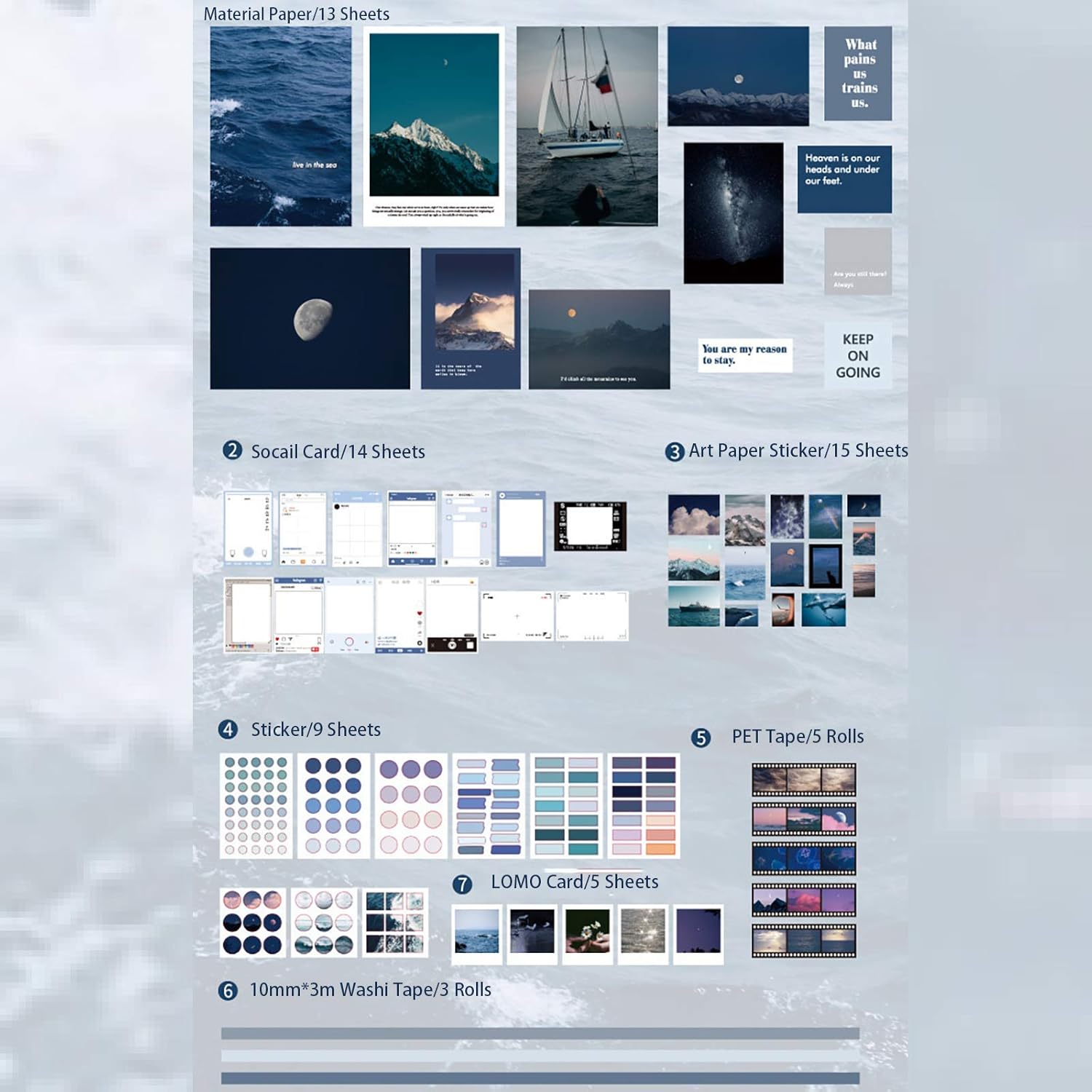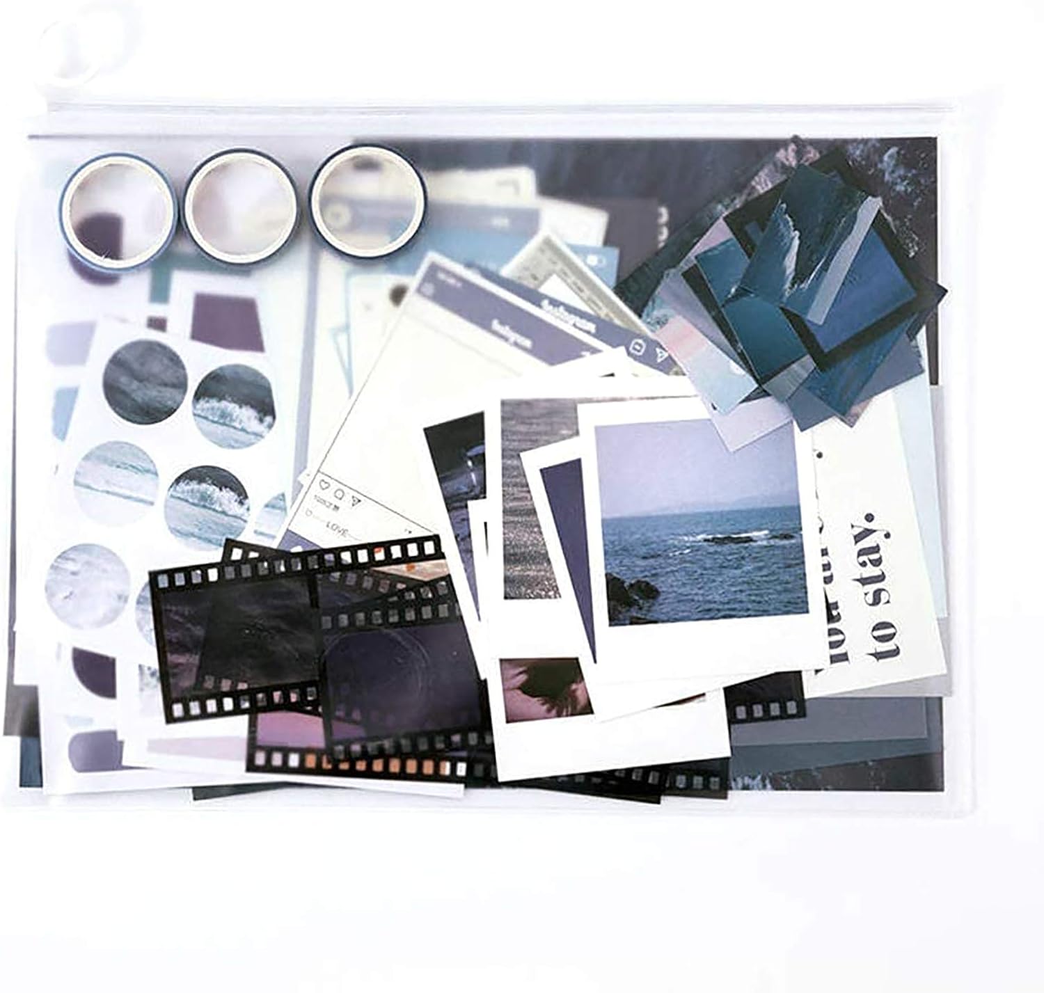 MAXLEAF 64PCS Literary Vintage Ins Style Scrapbook Bullets Journals Decoration Material Pack for DIY Scrapbook Album Decoration with Poster Tapes Stickers (Blue)