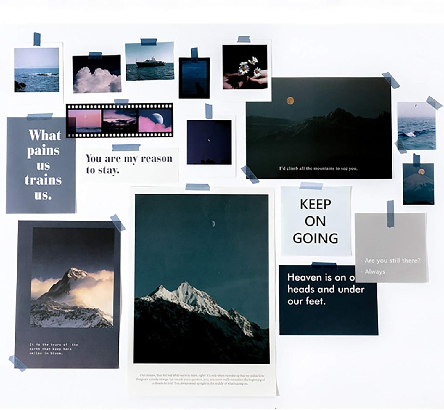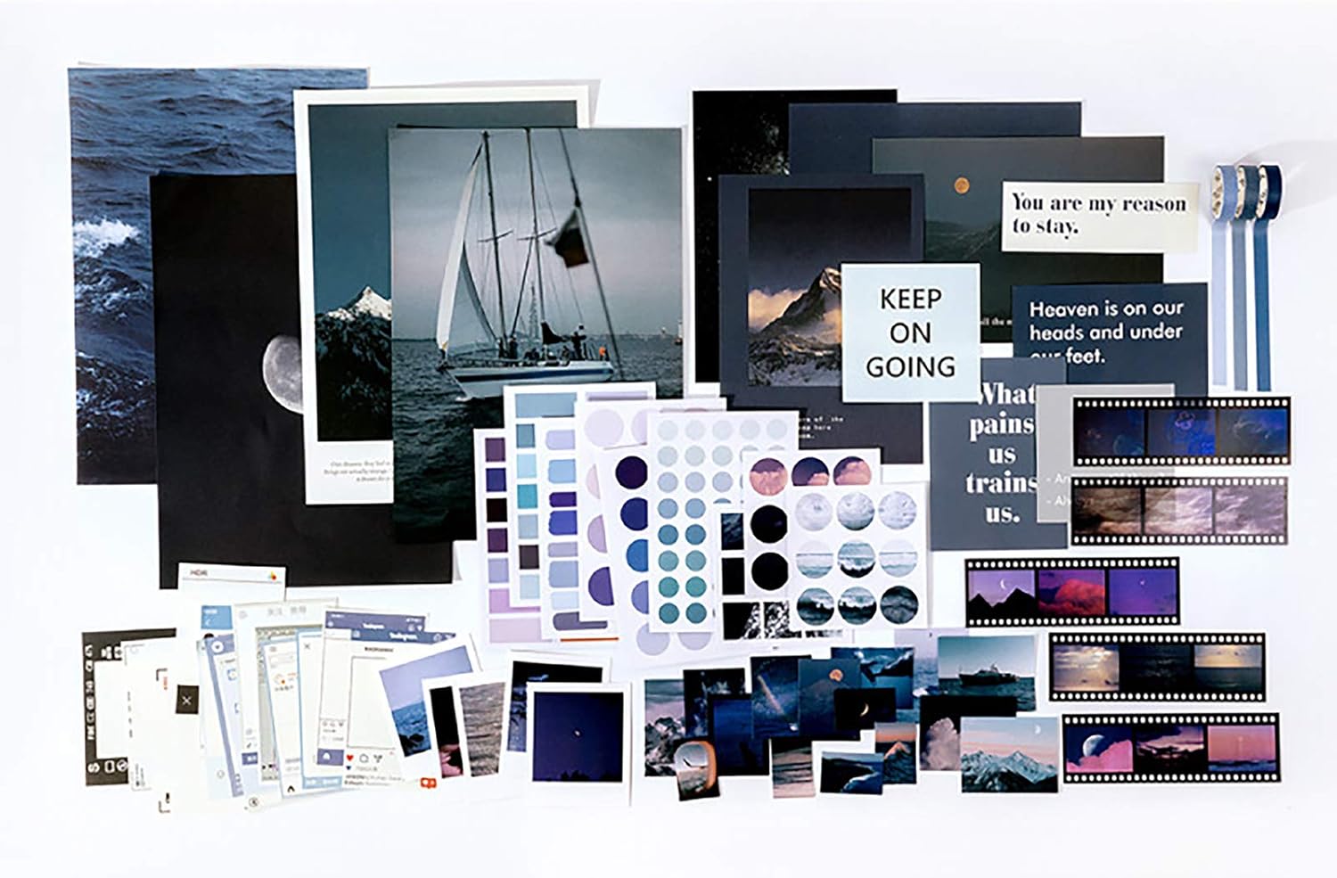 - Big Series: 64PCS material elements, including A4 size poster x 4, A5 size poster x 4, coated paper stickers x 15 sheets, LOMO card x 5, PET transparent tapes x 5, mini coated stickers x 9 sheets, letter papers x 5pcs, washi tapes x 3 rolls, writable social cards x 14pcs. A really big series material for decoration.