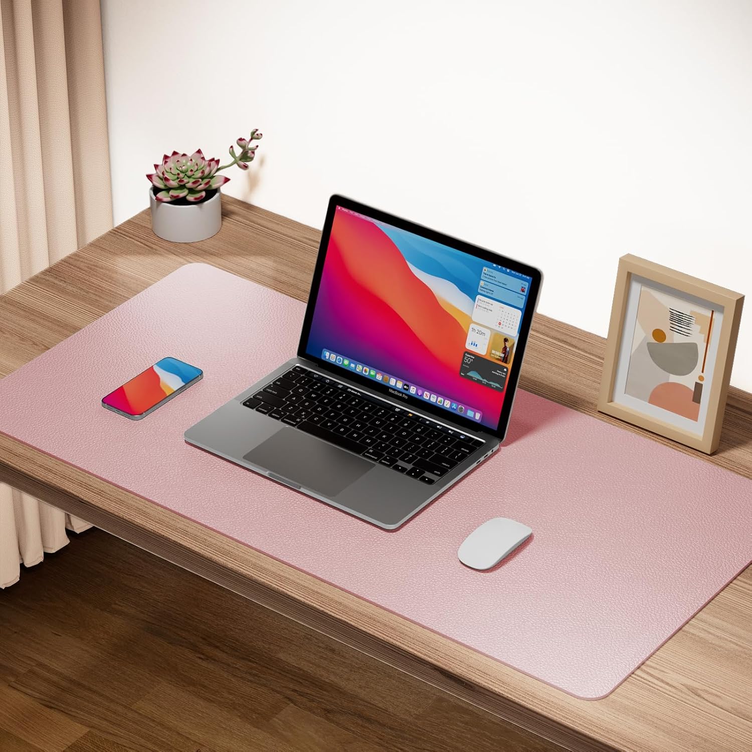 Boutilon Leather Desk Pad Protector,Non-Slip Mouse Pad,Laptop Desk Pad,Office Mouse Mat,Waterproof Leather Desk Blotter,Desk Writing Pad for Office and Home (M-Pink,30"x14")