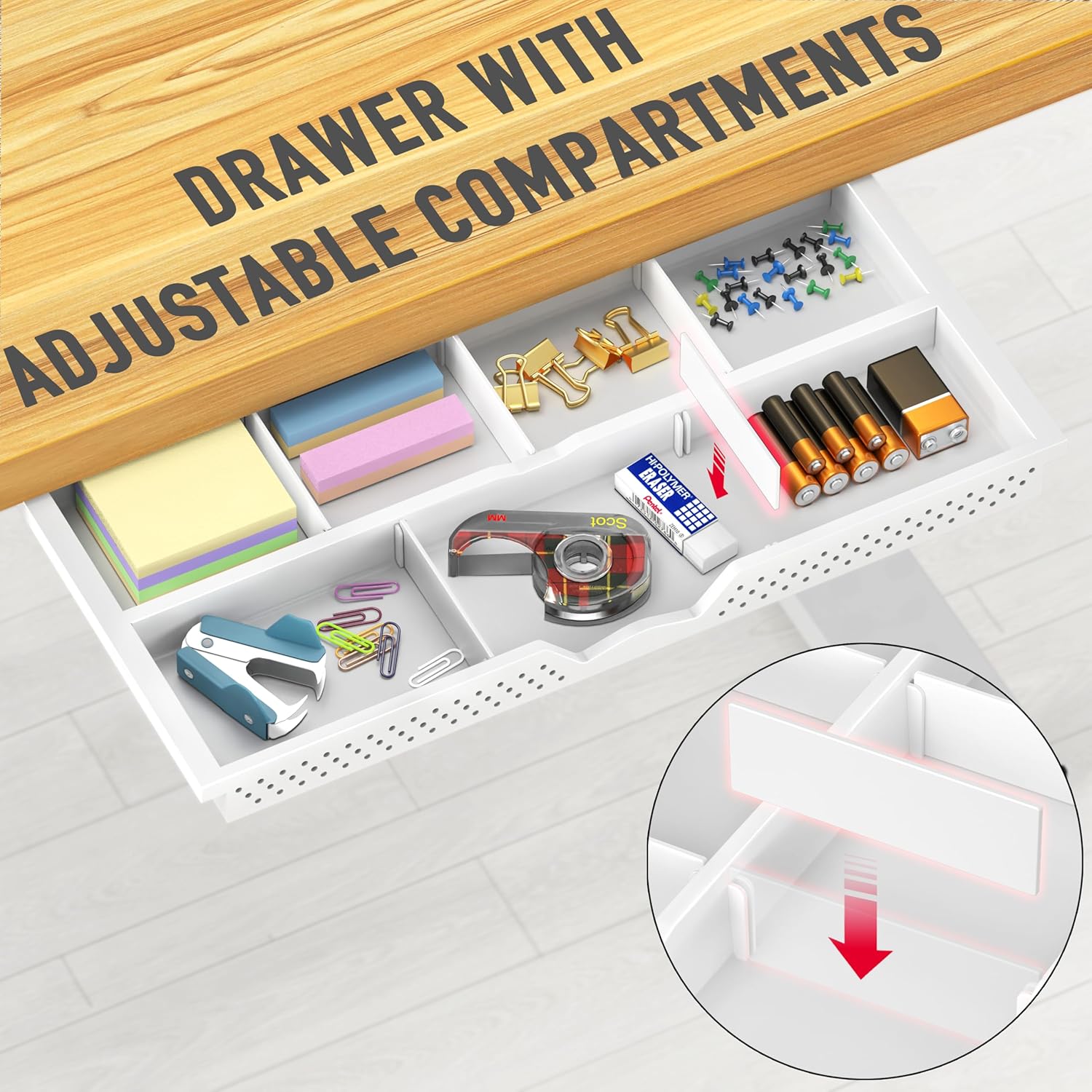 - Integrated Cable Management , Hooks and Drawer: Includes a built-in cable tray to neatly organize cords and reduce desktop clutter, maintaining a clean and professional workspace.