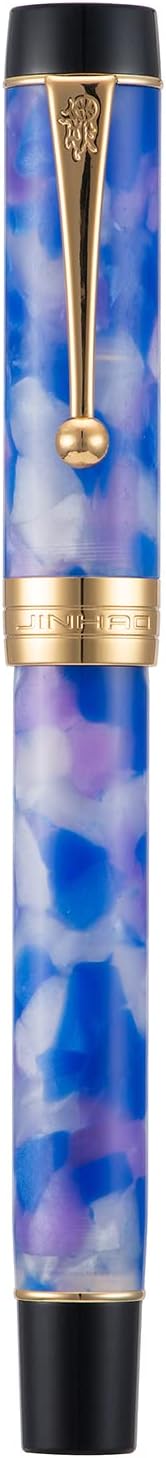 Jinhao 100 Fountain Pen Celluloid Classic Style, #6 Nib Smooth Writing Instrument with Refillable Converter and Pen Case Set