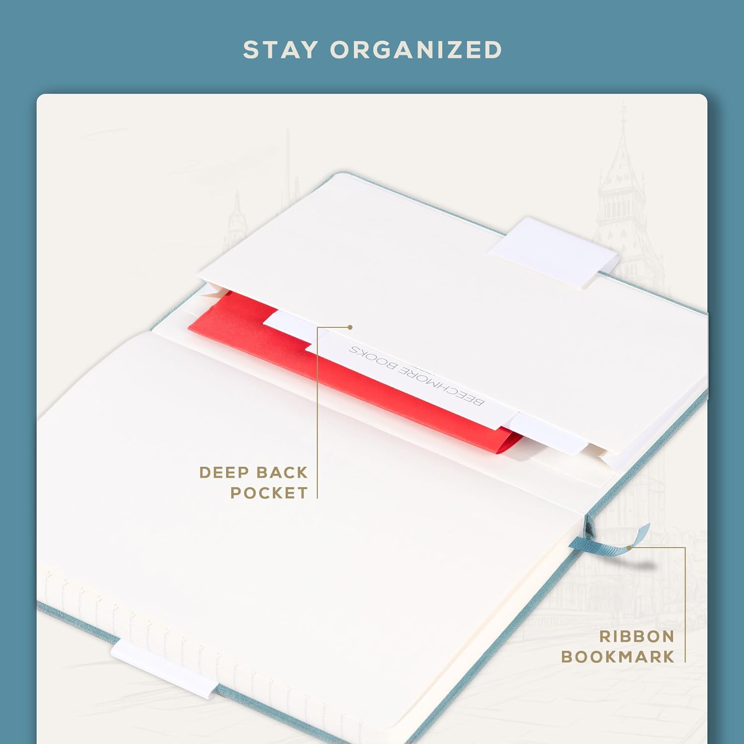 BEECHMORE BOOKS Lined Journal Notebook, 5.8 x 8.3 inch, A5 160 Lined Pages, Hardcover Leather Journals for Women, Men, Writing and Notebooks for Work - 120 GSM Thick Paper, Gifts Box Included