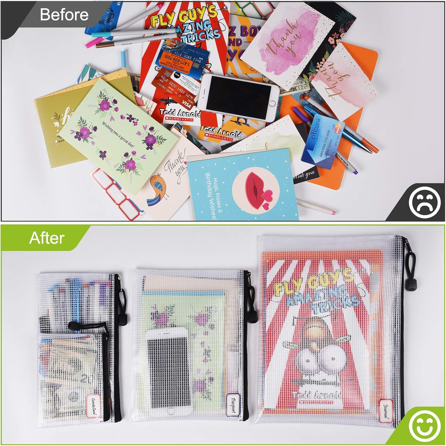 - 【Product Size】Size of the high quality mesh document bags with Zipper are A3,A4,A5,B5,A6,B8, each size 2 pcs. Which can be used to store some office supplies, like stationery, receipts, invoices etc., also can be used for home daily storage, like the jewelry, make up brush and so on.