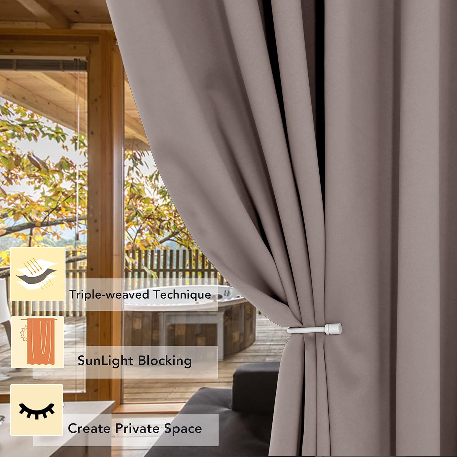 - PREMIUM BLACKOUT MATERIAL: Our room darkening curtain is made of 100% polyester fabric and have the same color with the front and back. Crafted in a certified STANDARD 100 by OEKOβTEX factory from a durable soft and thick triple weave blackout fabric which block out 90% above sunlight and UV rays. Darker colors work better.
