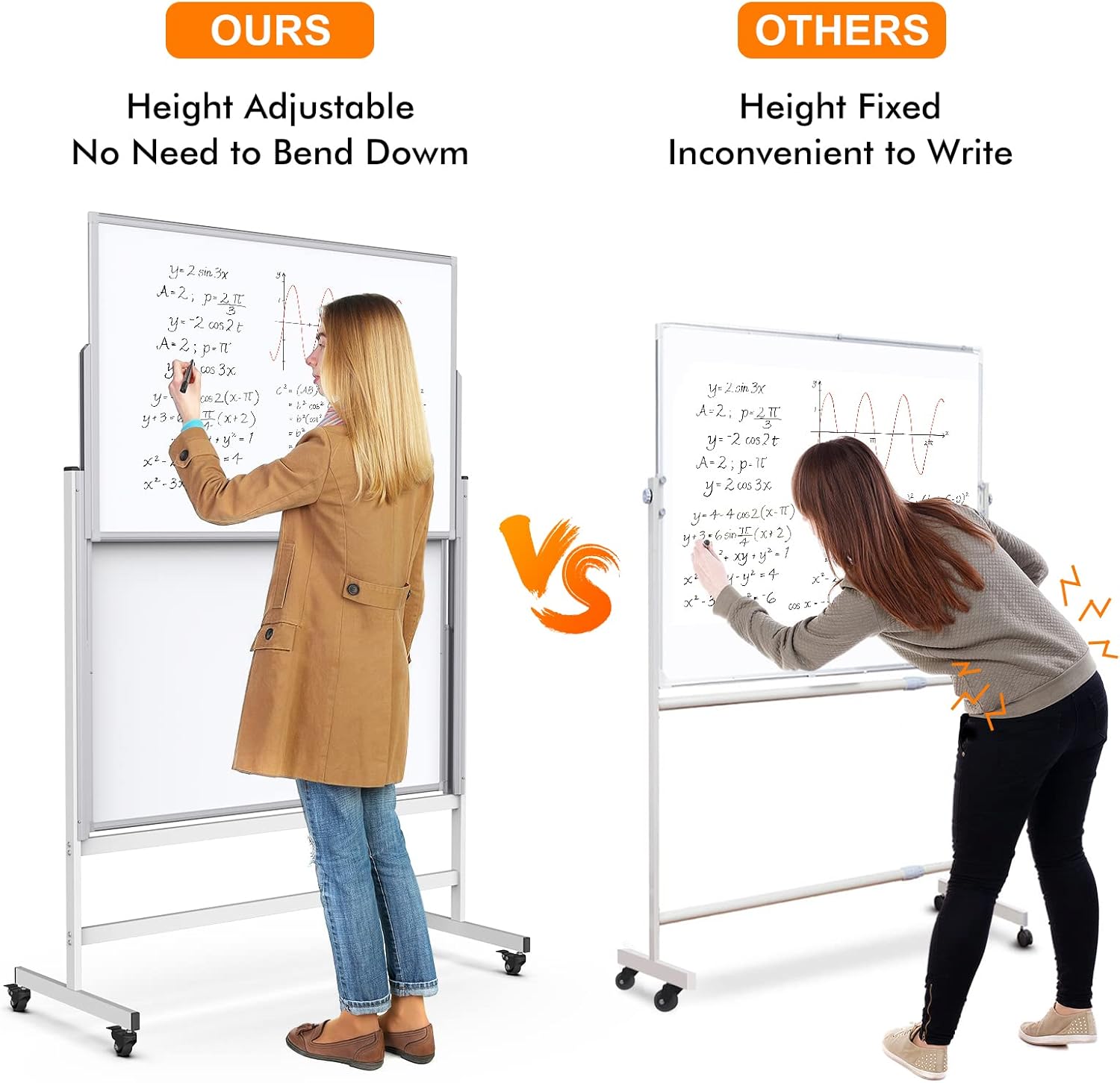 - Adjustable & Switchable Height: The dual-track design is introduced into the construction of maxtek large mobile dry-erase board. This allows for easy maneuvering between boards and keep important notes at eye level. The adjustable height, which can be extended from 48 inches to 76 inches, can meet the needs of both adults and kids while sitting or standing. Moreover, interactive teaching or parent-child activities will be more diverse and interesting with this mobile standing whiteboard.