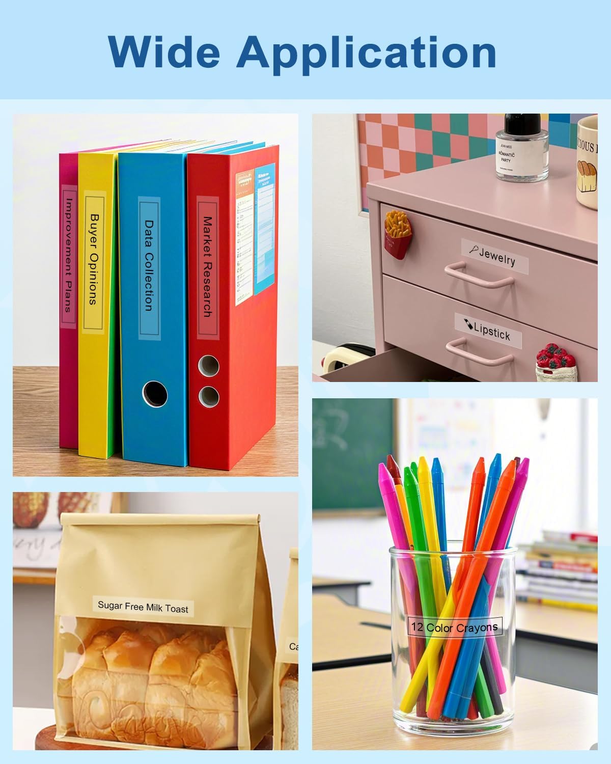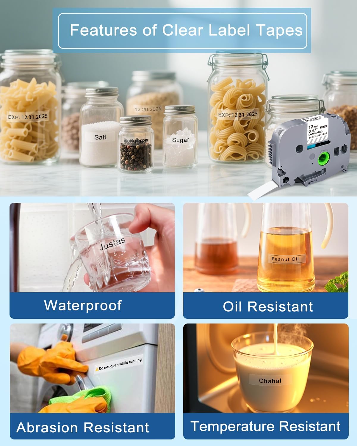 - Wide Applicability: Replacement for brother p touch label tape clear are suitable for indoor and outdoor use, even in harsh weather conditions. Can be used for Office supplies, bedroom, wardrobe, kitchen utensils, water heaters, etc