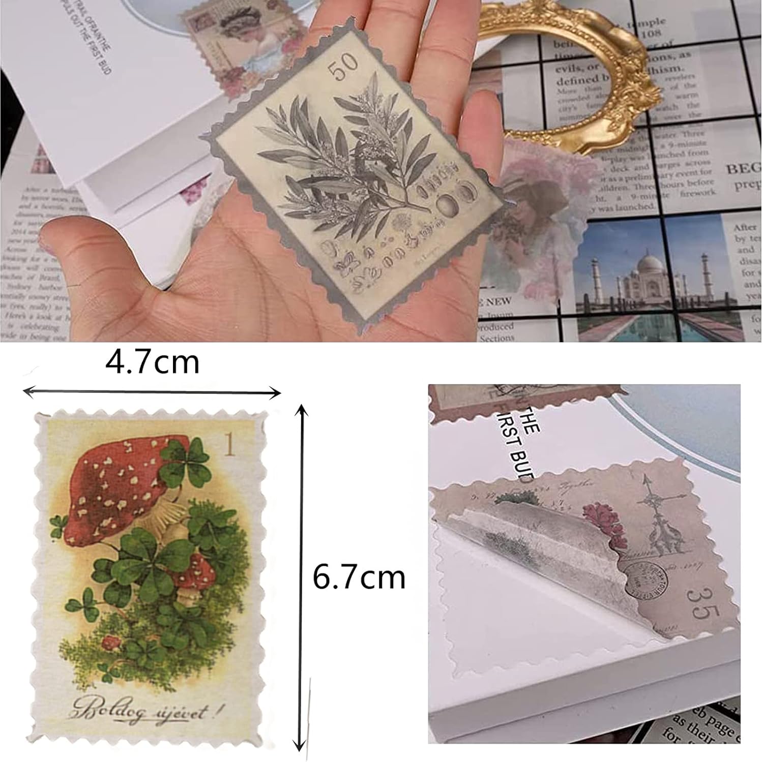 - MULTI-USE - These vintage stamp-like washi stickers is perfect for handmade cards, mailing envelopes, planners, traveler's journals, scrapbooks, garden journals, handmade cards, diary, photo albums, school projects, and much more. Reusable clean tear with zero residue.