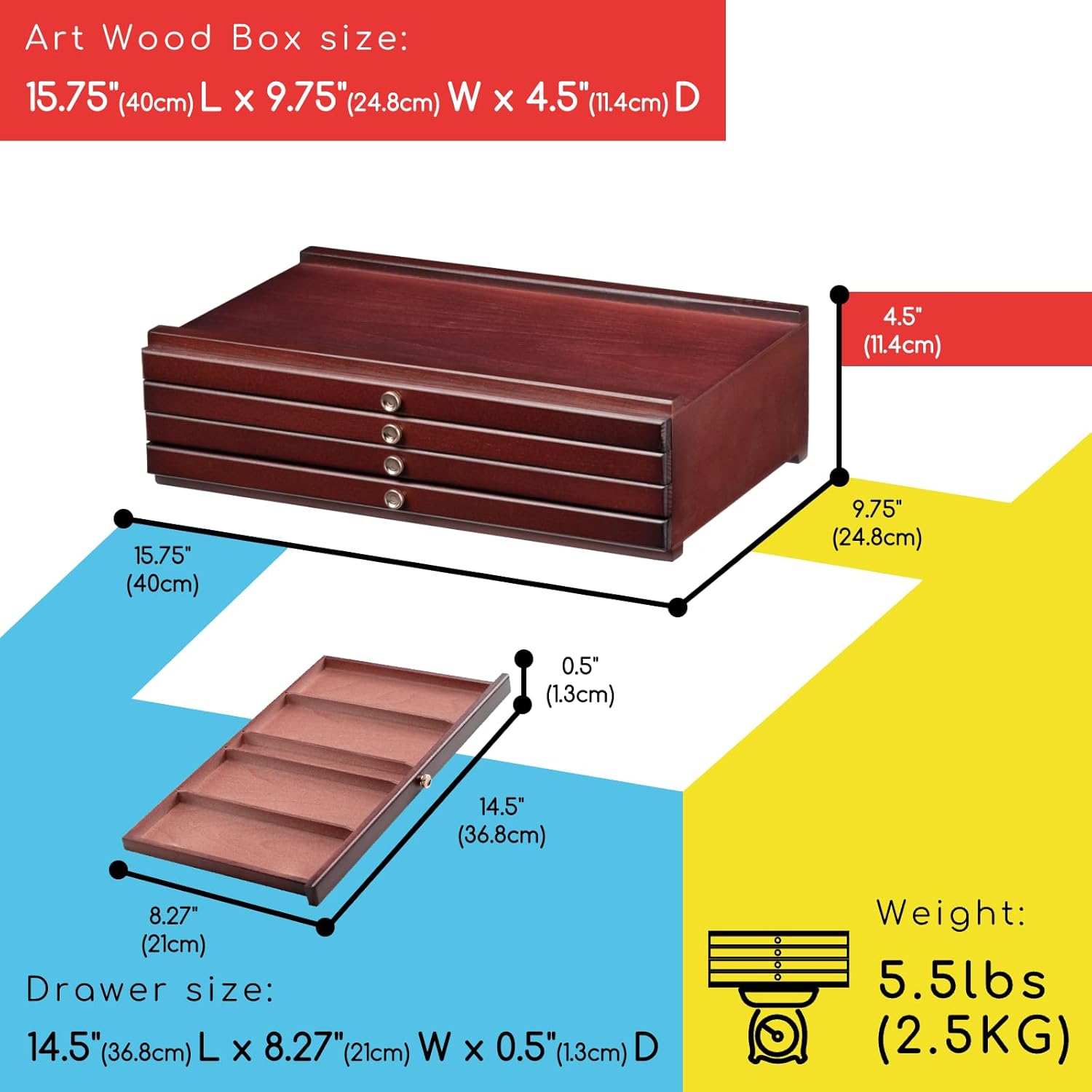- Great Storage with Compact Box: 15.75" x 9.75" x 6.5"LWH, this wooden art box with drawers is easy to collect art supplies, simple and clear for artists and painters who want to store art tools like pastels, brushes, pens, pencils, blending tools, small accessories and more.