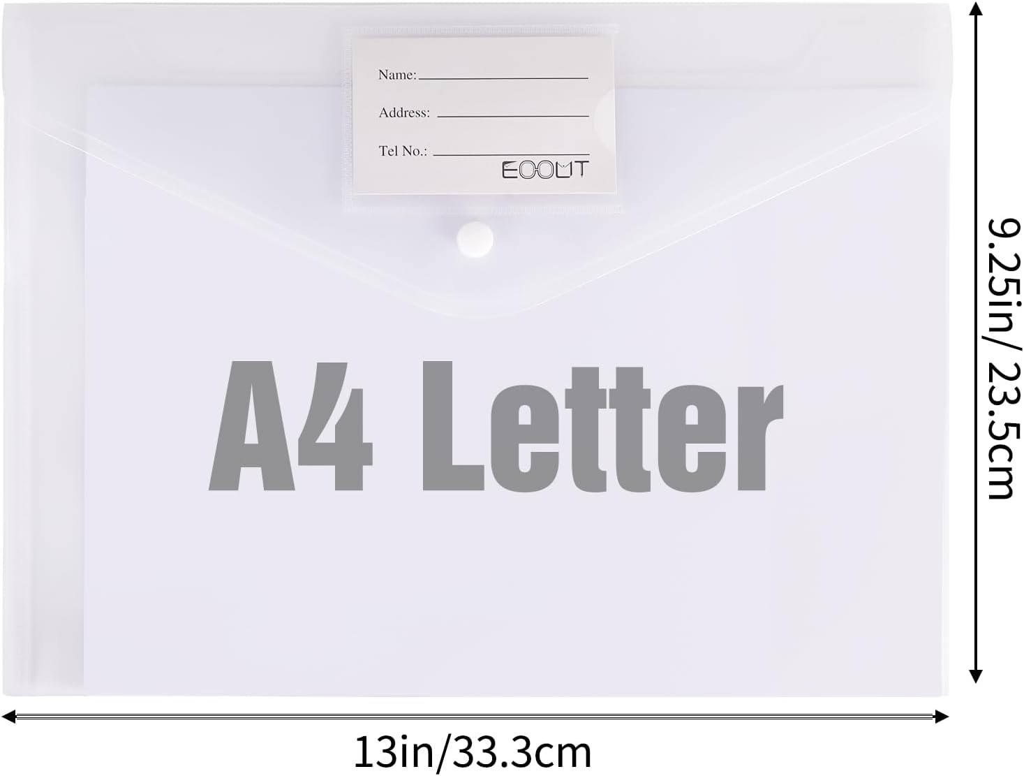 EOOUT 30pcs Plastic Envelopes, Clear Envelopes with Snap Closure, Document Folders Letter Size A4 Size File Envelopes with Label Pocket for School Home Work Office Organization