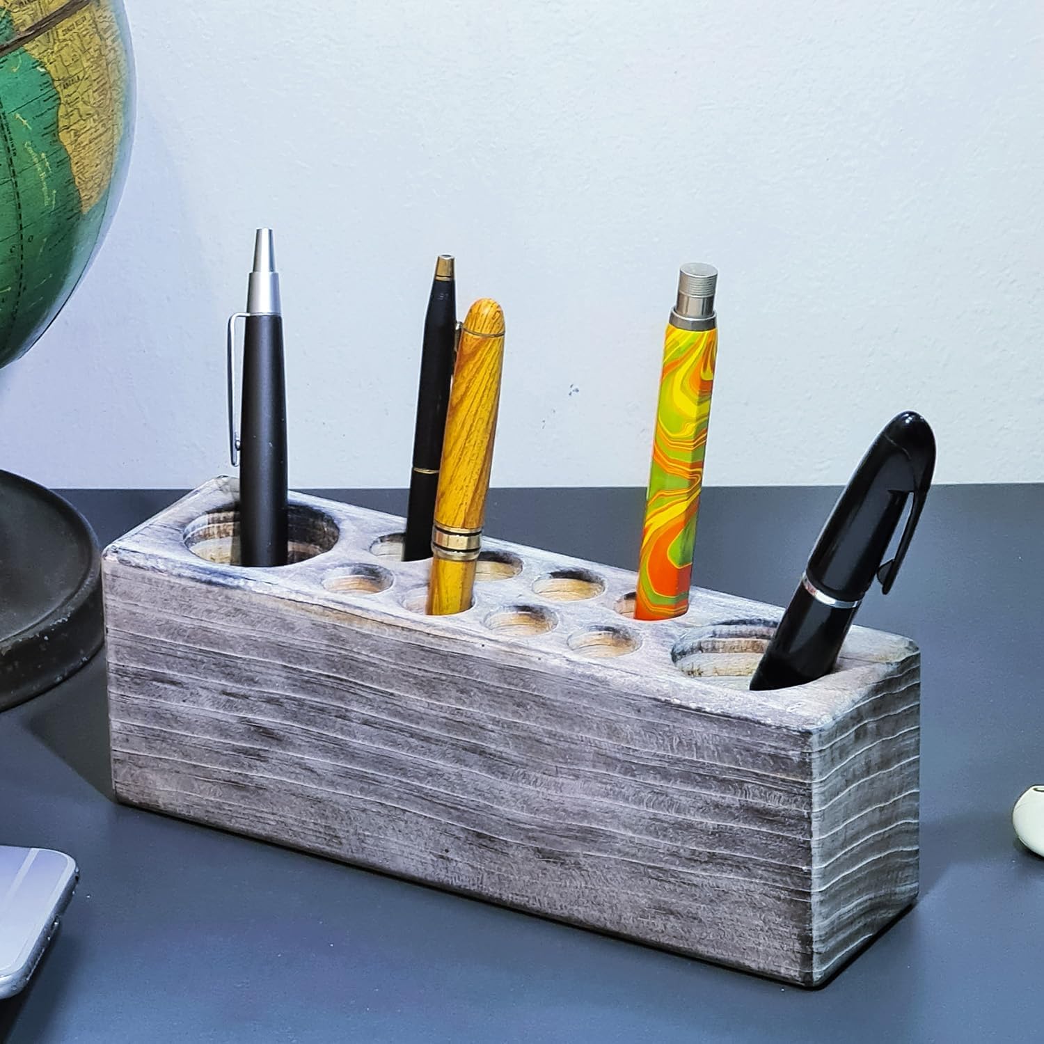 - HANDMADE β A whitewashed wood pencil holder for desk that is one of a kind. It is one solid piece of wood, hand painted, each with its own unique patterns and colors.