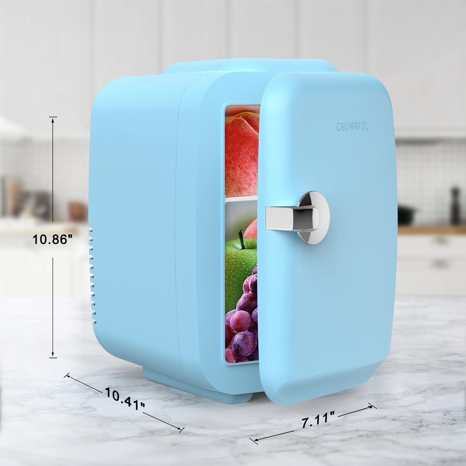 CROWNFUL Mini Fridge, 4 Liter/6 Can Portable Cooler and Warmer Personal Fridge for Skin Care, Cosmetics, Food,Great for Bedroom, Office, Car, Dorm, ETL Listed (Blue)