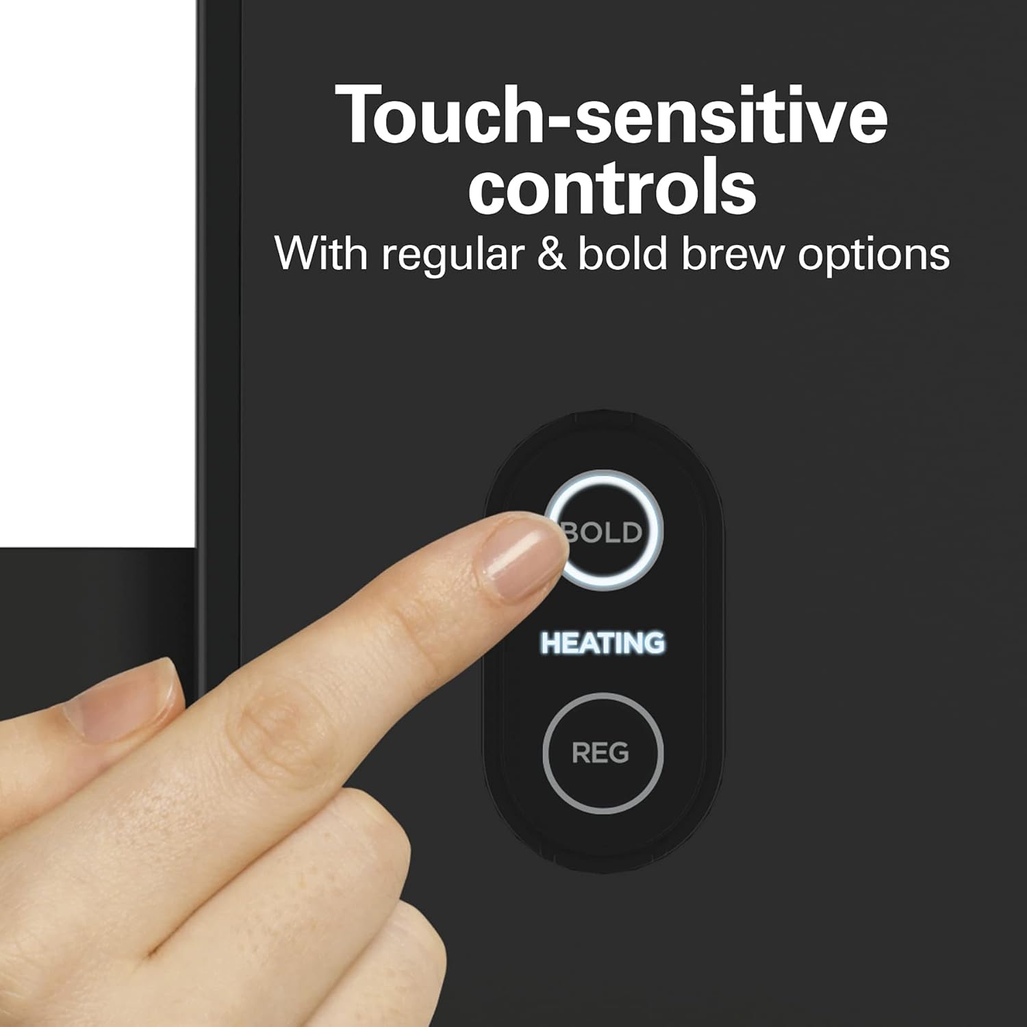 • TOUCH-SENSITIVE CONTROLS WITH REGULAR AND BOLD BREW OPTIONS: These high-tech, capacitive-touch controls are sensitive to a light tap, so it's easy to select your settings, such as brewing coffee with regular or bold strength