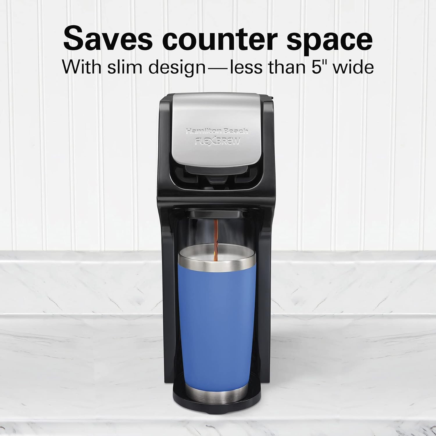 Hamilton Beach FlexBrew Single Serve Coffee Maker, Compatible with Pod Packs and Grounds, 14 oz. Water Reservoir, Slim Design, Fast Brewing, Black (49900)