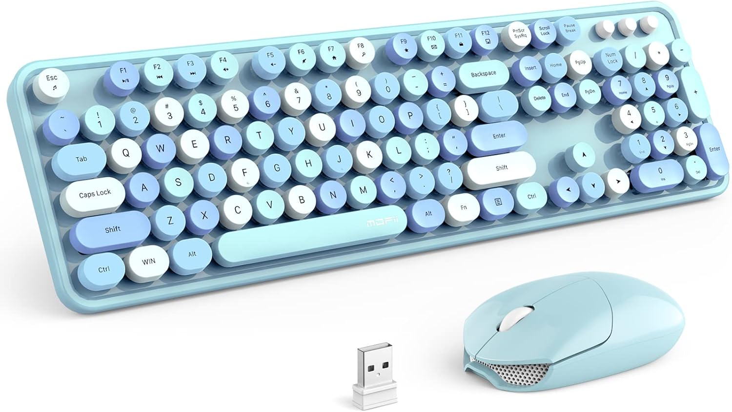 MOFII Wireless Keyboard and Mouse Set, Retro Full Size Typewriter Keyboard with Number Pad and Sport Car Mouse for PC Computer Desktop Laptop Windows (Blue Colorful)