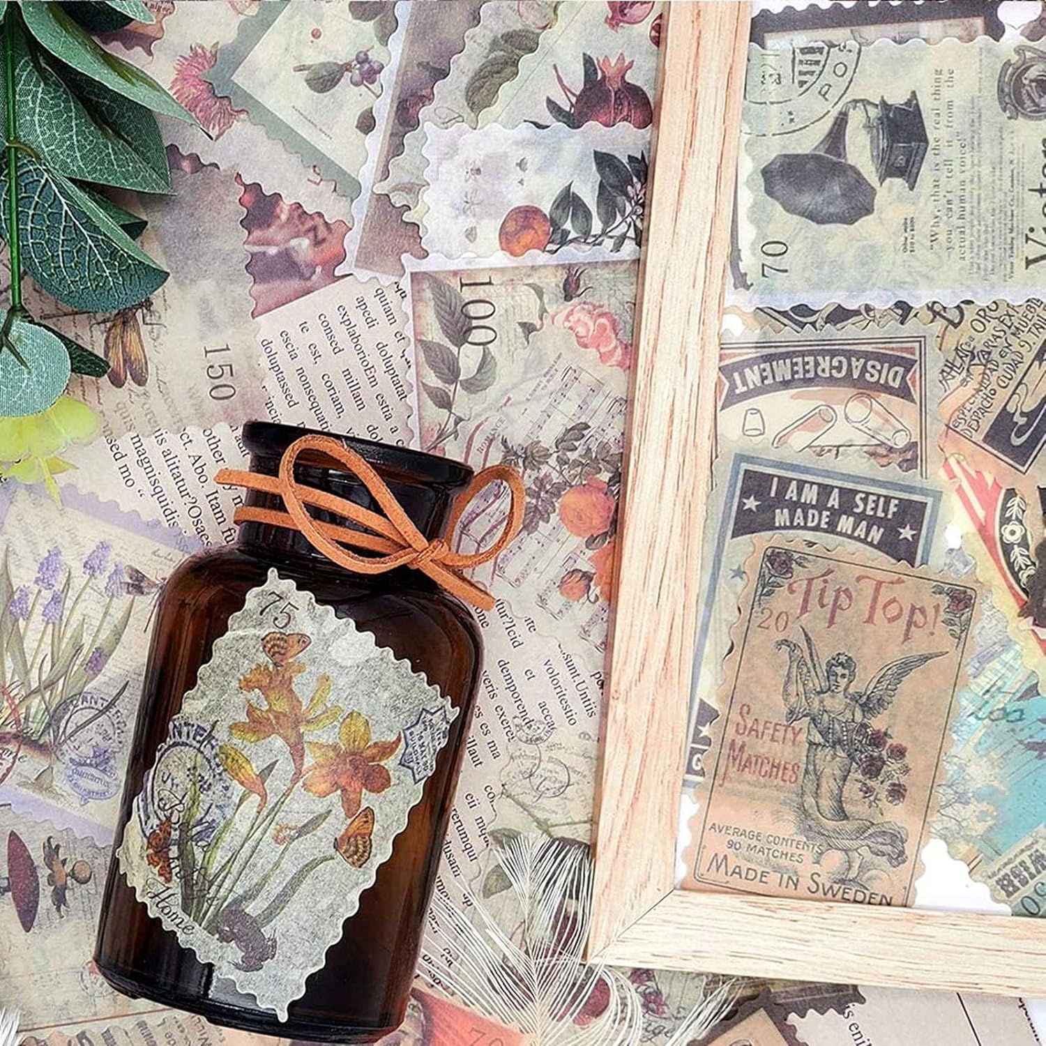 - 60 assorted vintage stamp stickers with 30 unique designs for scrapbooking and crafts