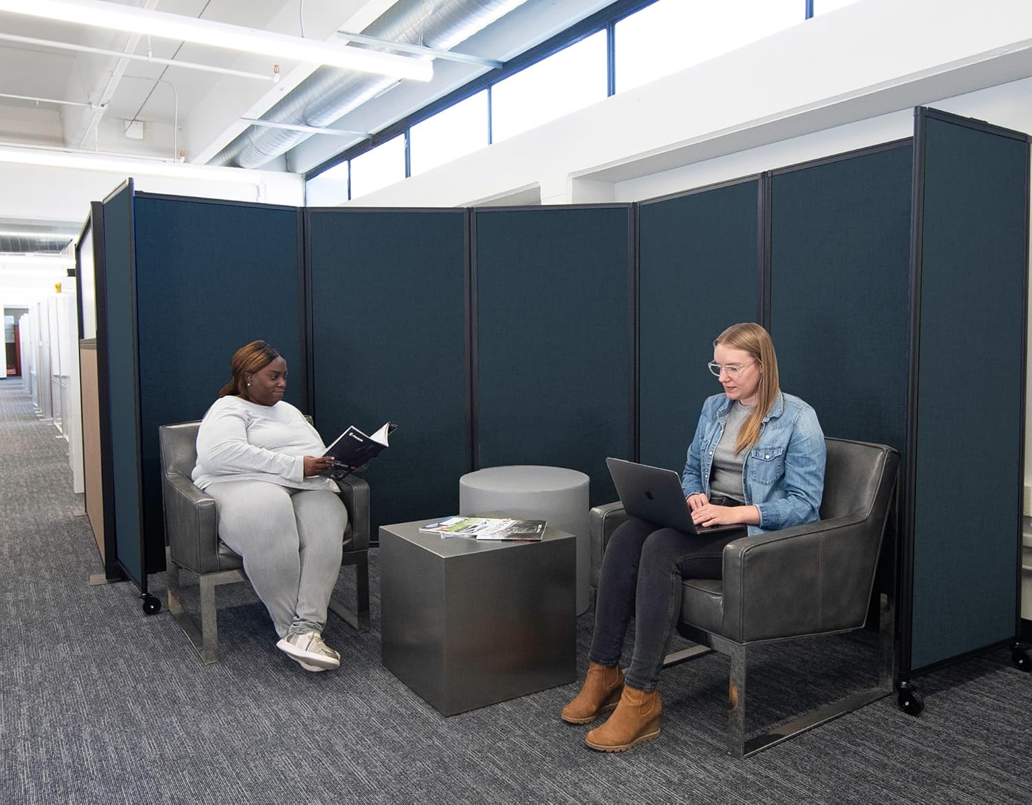 - THOUGHTFUL DESIGN: Made to roll around easily on wheels, this portable room separator also features locking casters to hold it in place. It comes with a trackable surface, sound-dampening fiberglass panels and a folding design for easy storage.